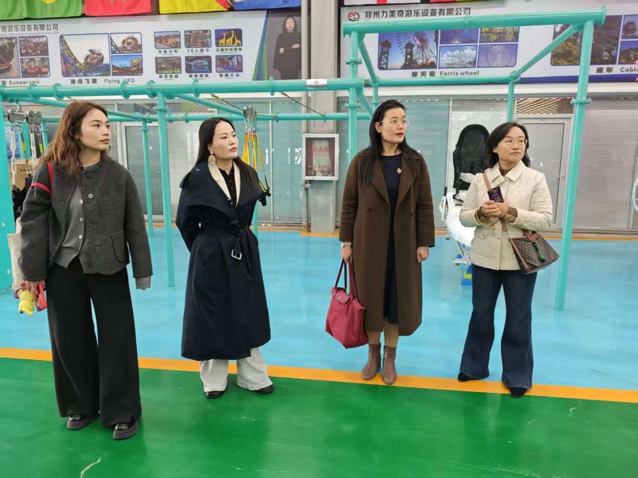 力美奇集团人力资源总监温海朵对外国语学院一行表示热烈欢迎。在温海朵的陪同介绍下,外国语学院一行调研了公司的游乐设备生产工厂及电商中心。