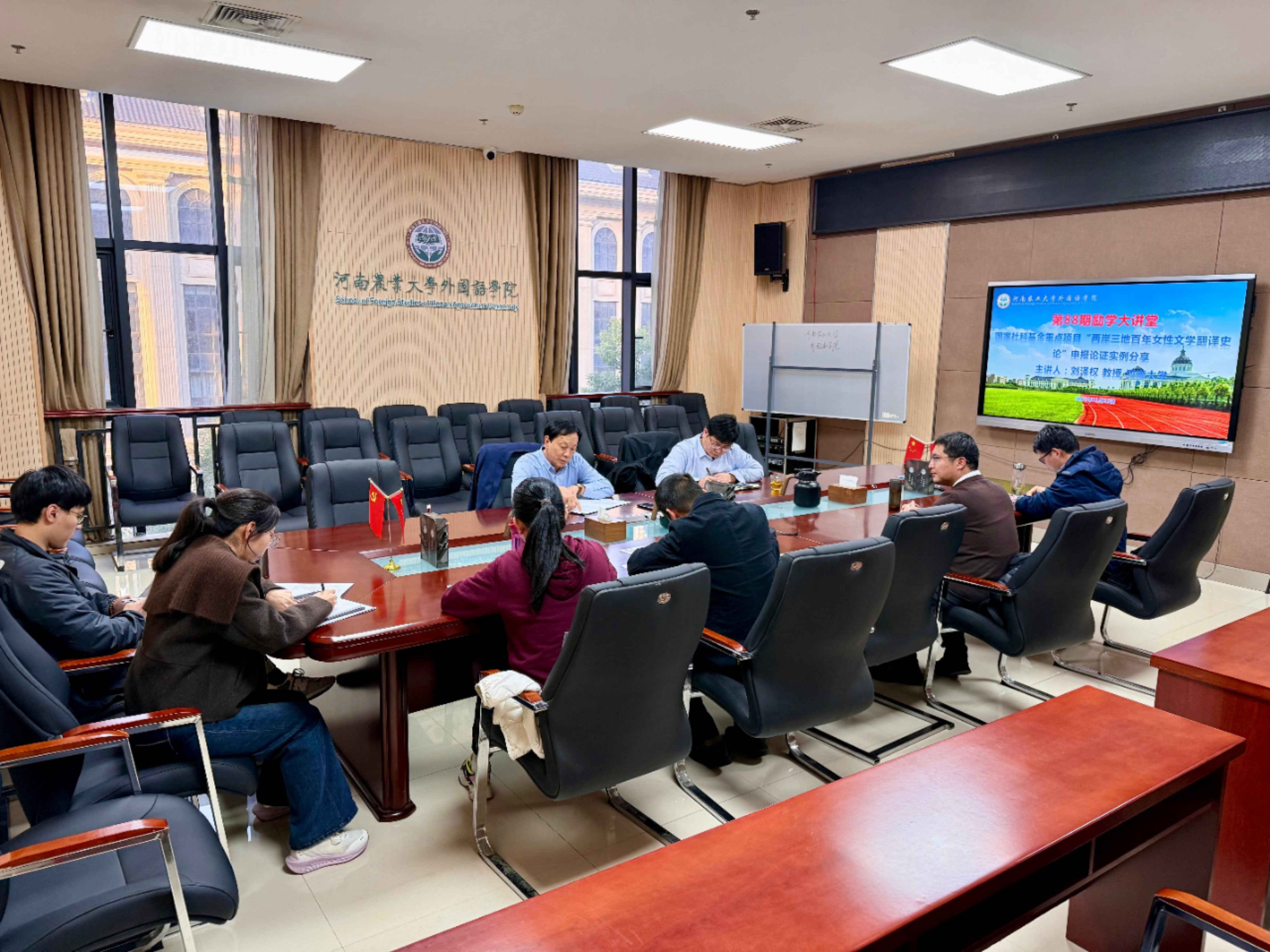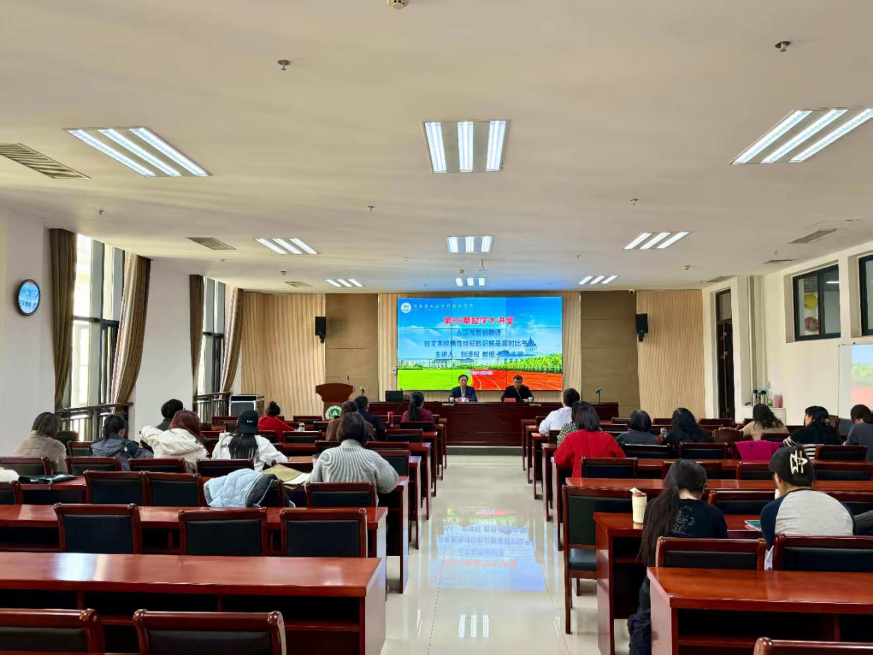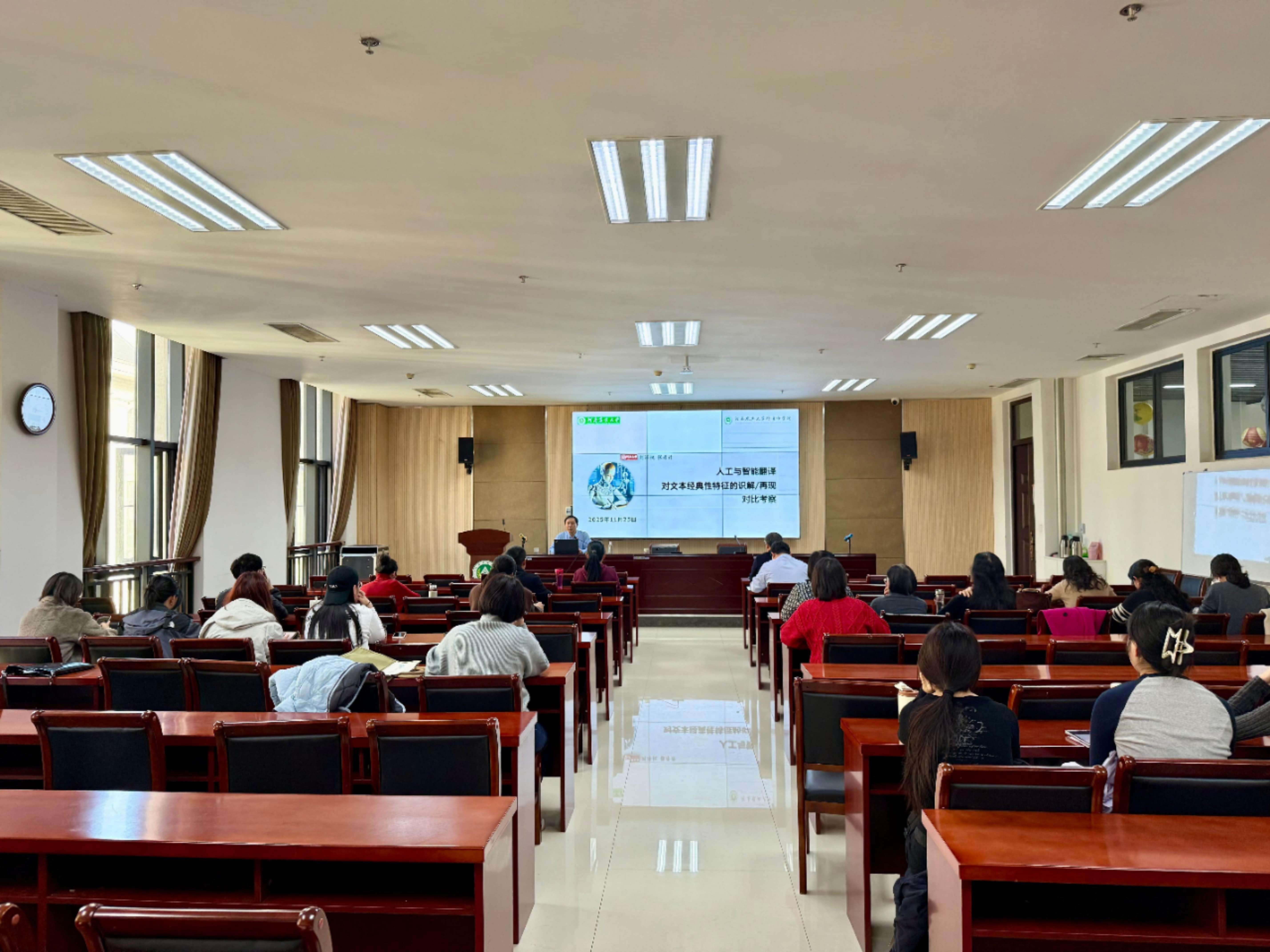 本网讯(审稿:吴玲;供稿:马孝幸;摄影:黄彪)11月25日,河南大学二级教授、博士生导师刘泽权应邀做客外国语学院第88期励学大讲堂,分别做了题为“人工与智能翻译对文本经典性特征的识解呈现对比考察”和“国家社科基金重点项目‘两岸三地百年女性文学翻译史论’申报论证实例分享”两场报告会。报告会由院长张俊杰教授主持,学院骨干教师和研究生代表参加了此次报告会。