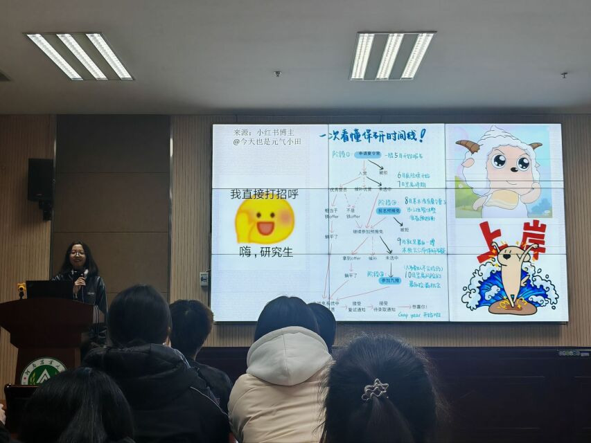 本次保研经验分享会围绕“精准覆盖需求、高效传递干货”的核心目标推进工作,受邀的保研嘉宾们结合自身经历,分模块讲解保研全流程的关键节点,从夯实学业与科研基础、精准筛选院校并准备个人简历、推荐信,到夏令营与预推免的笔试面试技巧等进行了系统而详尽的梳理与讲解。在随后的答疑互动环节,与会同学们踊跃提问,就自己关心的具体问题与嘉宾们进行了深入交流。