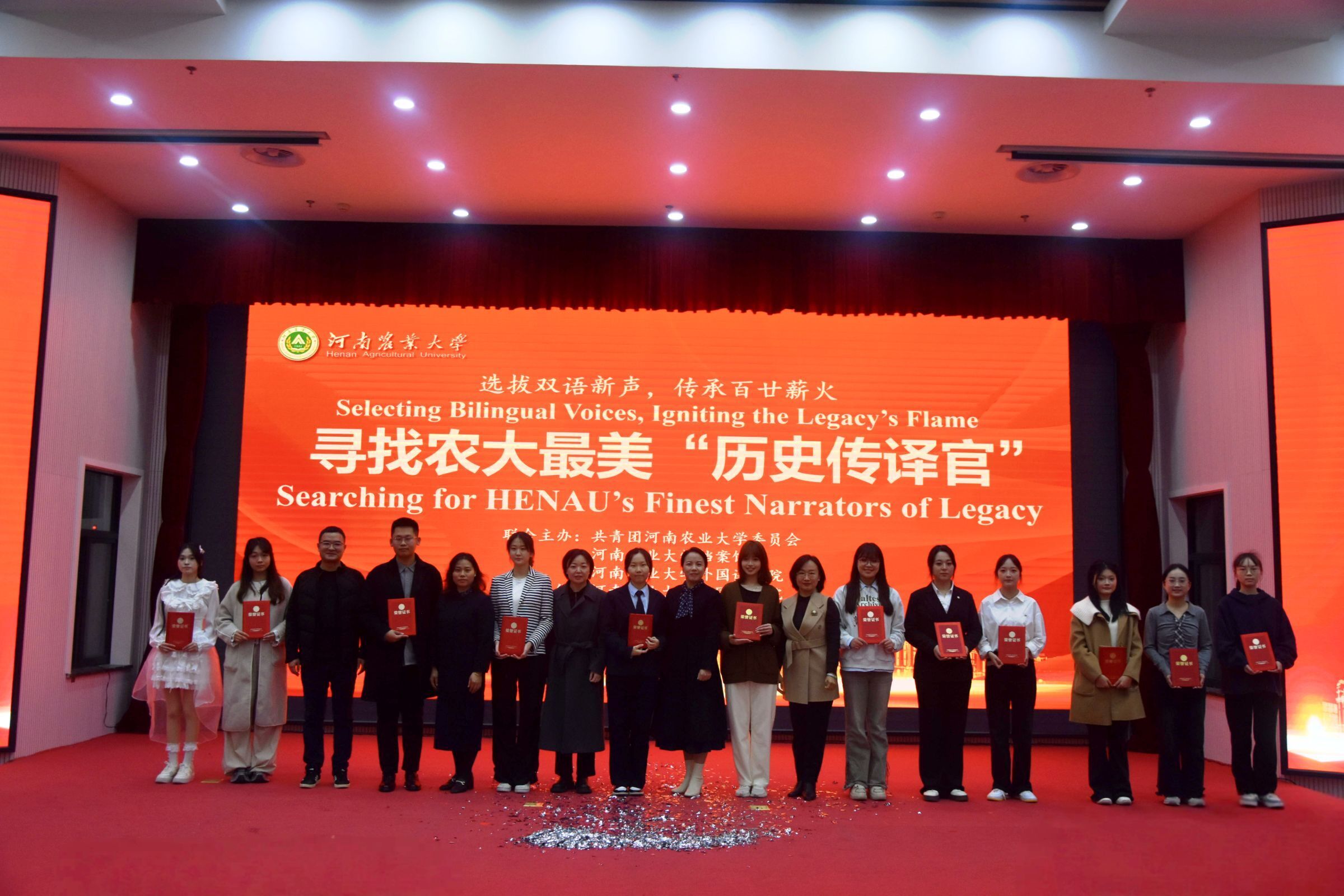 本网讯(审稿:王燕萍 供稿:宋扬 冯超)为进一步传承农大精神、展示办学成就,建设一支双语能力出色、熟知校史校情、兼具热情与责任感的解说队伍。11月11日,由校团委、档案馆、外国语学院联合主办,外国语学院承办的“选拔双语新声、传递百廿薪火”寻找农大最美历史传译官决赛落下帷幕。校团委书记雷雯、档案馆副馆长魏云、外国语学院党委书记王燕萍和英语系相关负责同志出席活动并担任本次比赛的评委。