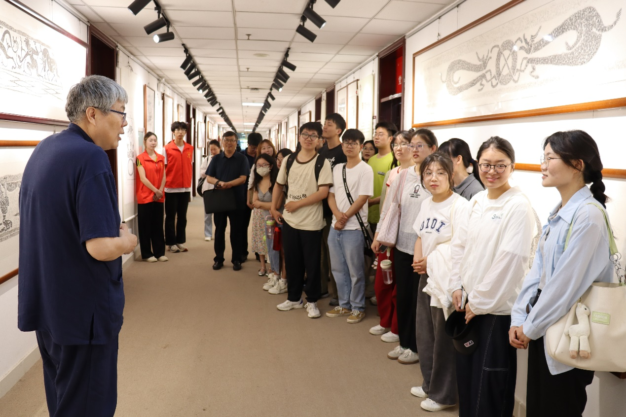 座谈结束后,我院师生走进汉拓传习馆,方清刚教授带领大家穿梭于汉画历史长廊。从拓片纹理里解读汉代生活百态,将千年往事鲜活地拉到同学们眼前,师生们被方老师生动的讲解及馆内陈列所吸引,沉浸在古雅的气息之中。