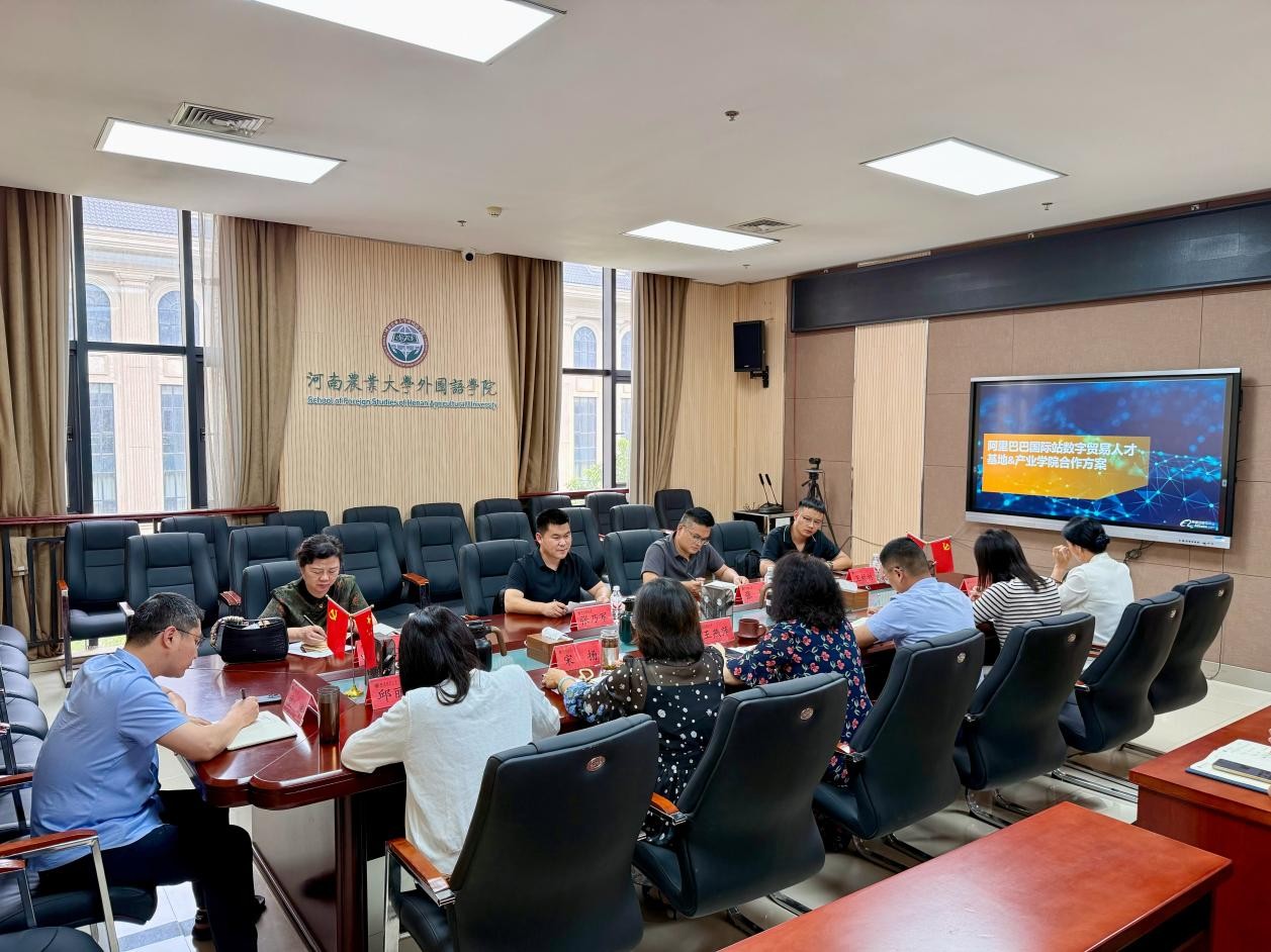 本网讯(审稿:杨鑫 供稿:郝晓峰 吕品 摄影:黄彪)6月9日下午,阿里巴巴国际站工作人员张乃军一行到访河南农业大学外国语学院。外国语学院党委书记王燕萍、党委副书记杨鑫及系部主任参加了座谈交流,会议由王燕萍主持。