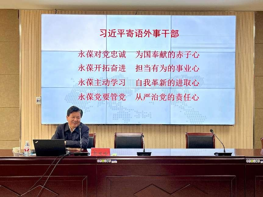 审稿:吴玲 供稿:马孝幸 摄影:黄彪)3月26日下午,河南省翻译协会会长郭俊峰教授应邀做客外国语学院第82期励学大讲堂暨明德人文讲坛,作了题为“新时代外事礼宾礼仪”的报告会。报告会由院长张俊杰教授主持,院党委书记王燕萍携师生代表参加了此次报告会。