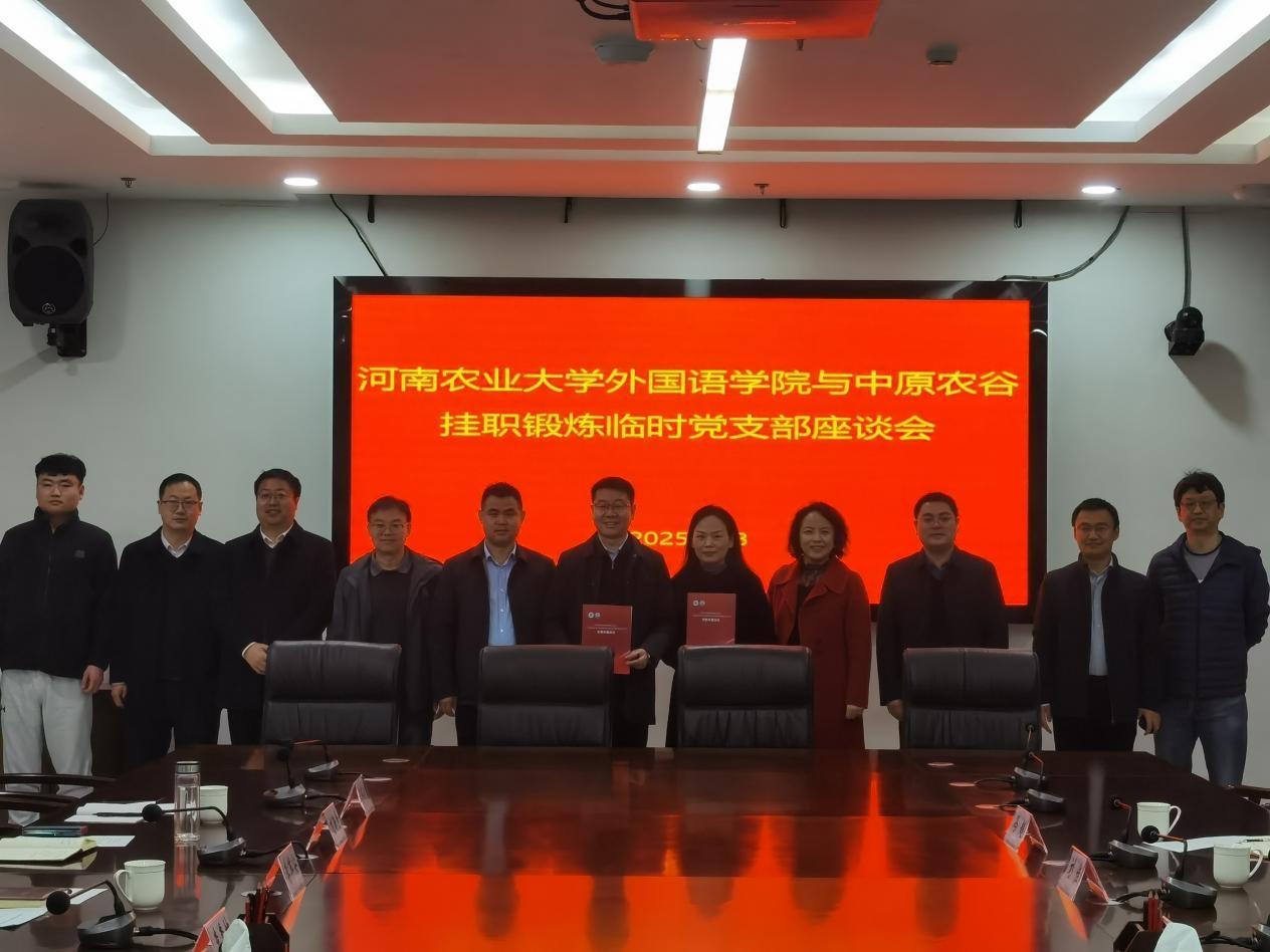 中原农谷管委会副主任李军安对中原农谷挂职锻炼党支部的基本情况进行了介绍,中原农谷挂职锻炼党支部与河南农业大学外国语学院大学英语教学部教工党支部签订联建协议。