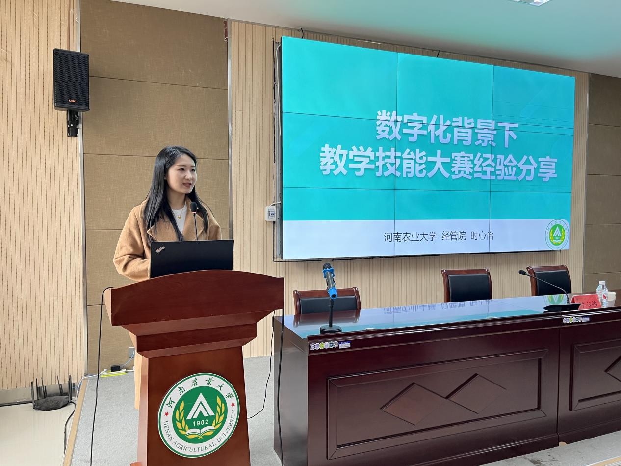 本网讯(审稿:吴玲 供稿:冯文妍 摄影:黄彪)3月11日下午,外国语学院举办第3期“讲金课,育名师”教学工作室教学专题辅导报告,邀请经济与管理学院教师时心怡作主讲嘉宾,报告主题为“数字化背景下教学技能大赛经验分享”。报告会由教学副院长吴玲教授主持,学院领导班子及全体教职工参加此次会议。