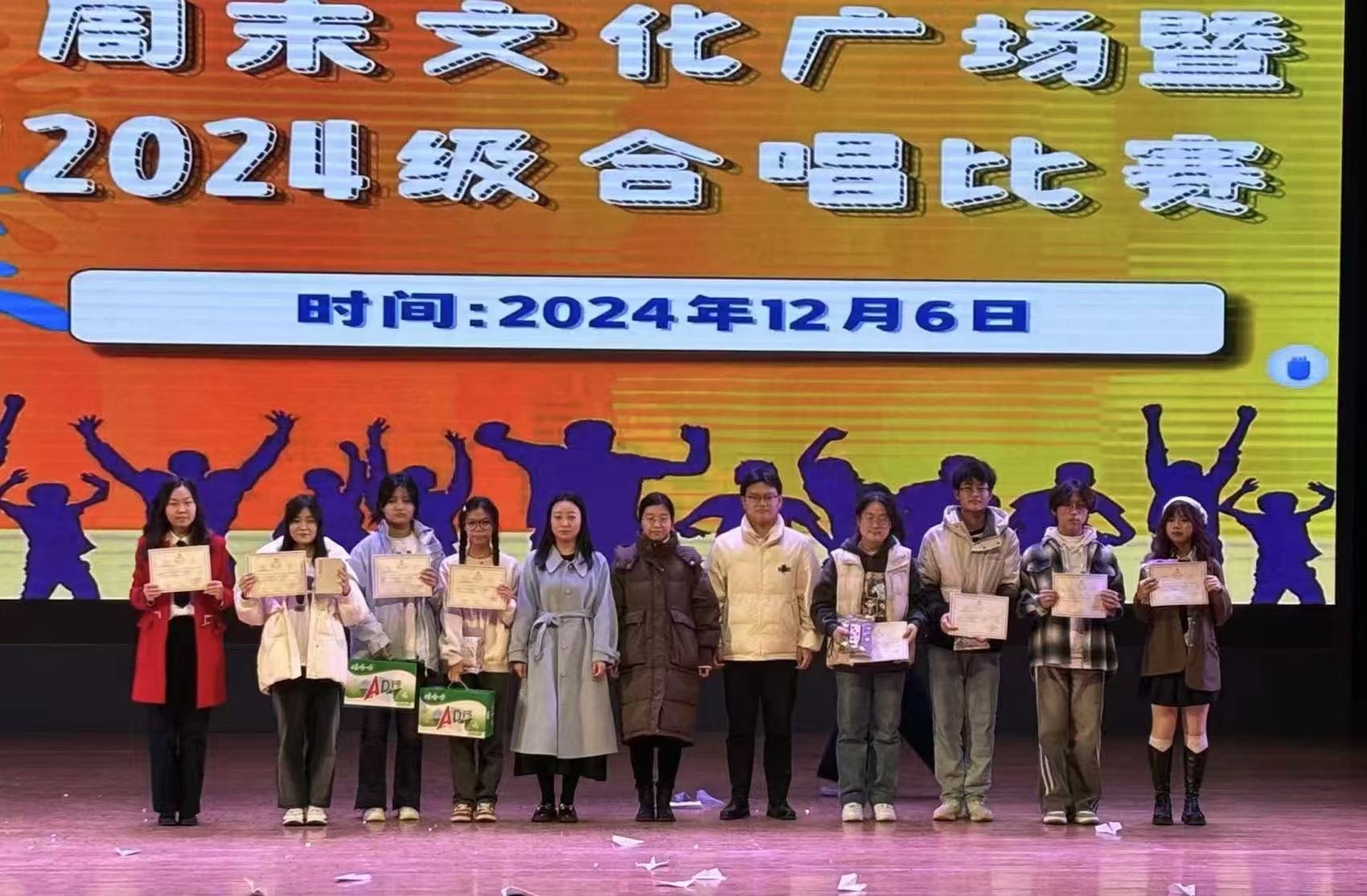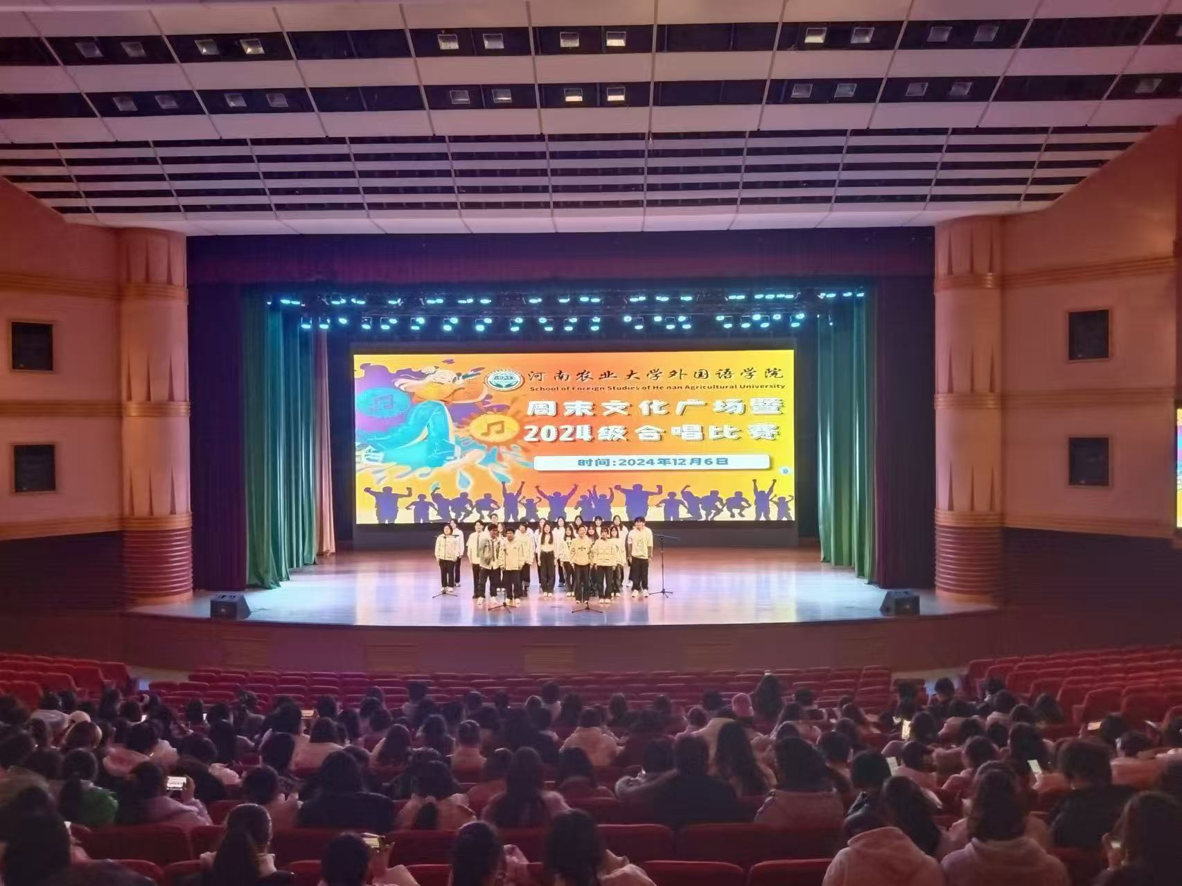 本网讯(审稿:杨鑫 供稿:冯超 杨若晴)为丰富校园文化生活,增强班级凝聚力,展现我院学生团结向上、奋发进取的青春精神风貌,12月6日,外国语学院于文化路校区千人大礼堂举办周末文化广场暨2024级合唱比赛。院党委副书记杨鑫、院团委书记冯超、辅导员武宗励、侯彦冰担任评委,24级全体学生参与了此次活动。