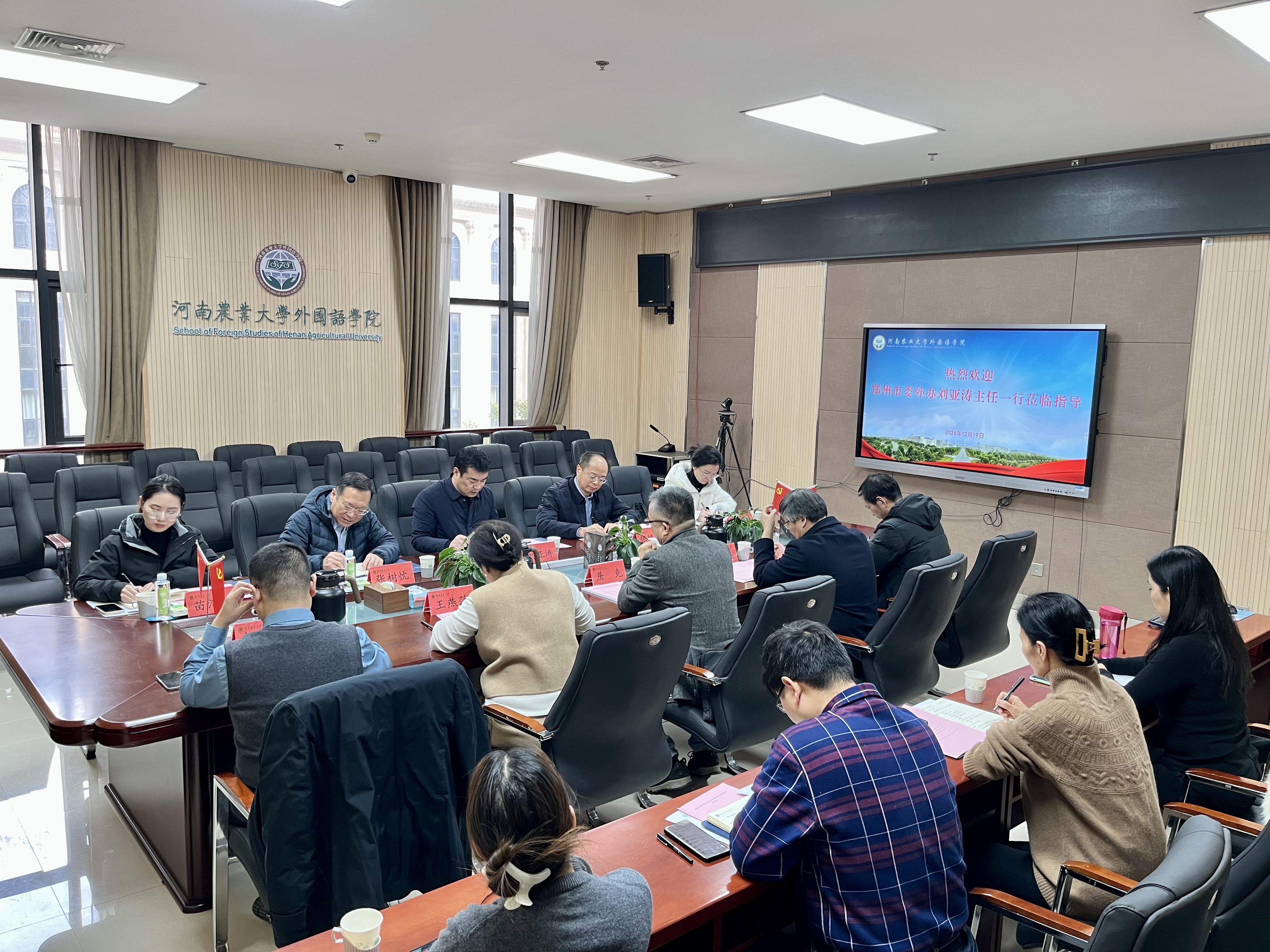 刘亚涛首先感谢外国语学院为郑州市委外办组织的系列国际交流合作事宜提供志愿服务。会上,刘主任介绍了郑州市委外办开展的系列服务工作、取得的国际交流合作成绩以及双方可行的合作事宜。