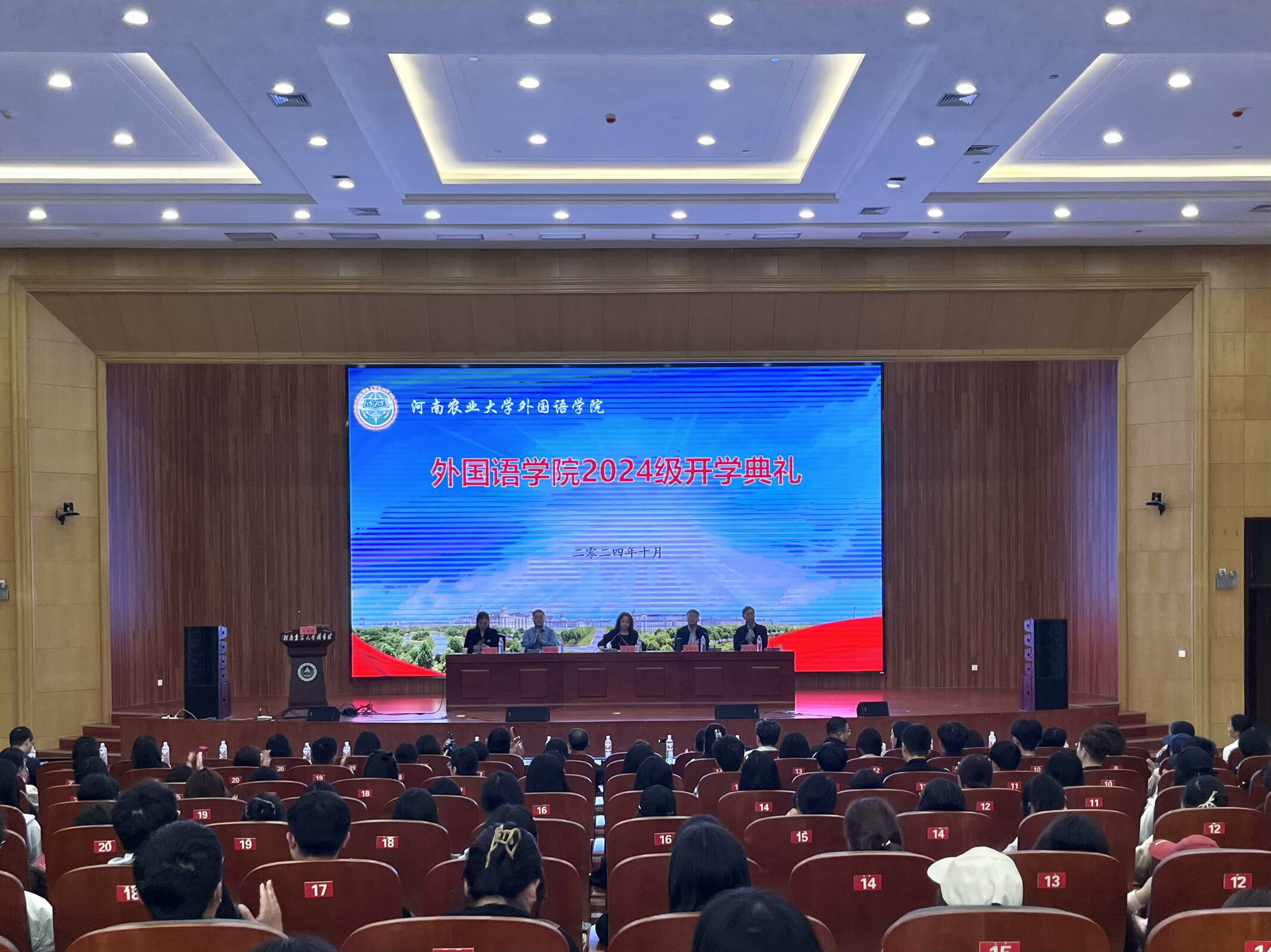 本网讯(审稿:杨鑫 供稿:冯超 杨若晴)秋光为序,筑梦启航,新学肇始,万象更新。10月13日上午,外国语学院2024级新生开学典礼暨开学第一课于龙子湖校区图书馆报告厅隆重举行。院党委书记王燕萍,院长张俊杰携全体班子成员出席会议,各系部室负责人、硕士生导师代表、院青年导师工作室指导教师和新生班主任、全体辅导员、新生助班、2024级研究生及本科生参加会议。典礼由院党委副书记杨鑫主持。