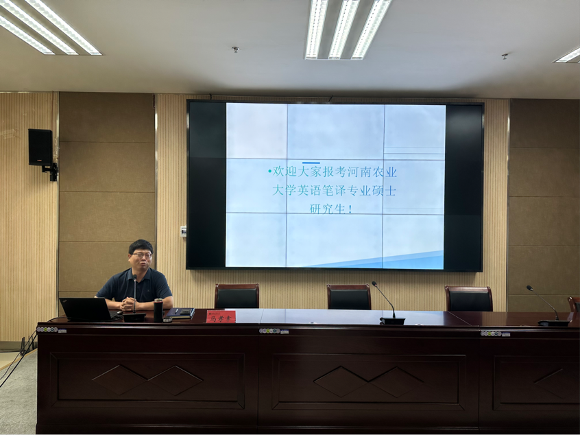 马孝幸从学院概况、学科建设、奖助体系、就业形势、招生政策等方面出发,对学院进行了全方位、多角度地介绍。他表示学院研究生培养具有师资力量雄厚、学科特色强、交流平台广等明显优势,热忱欢迎大家报考河南农业大学英语笔译专业硕士研究生。
