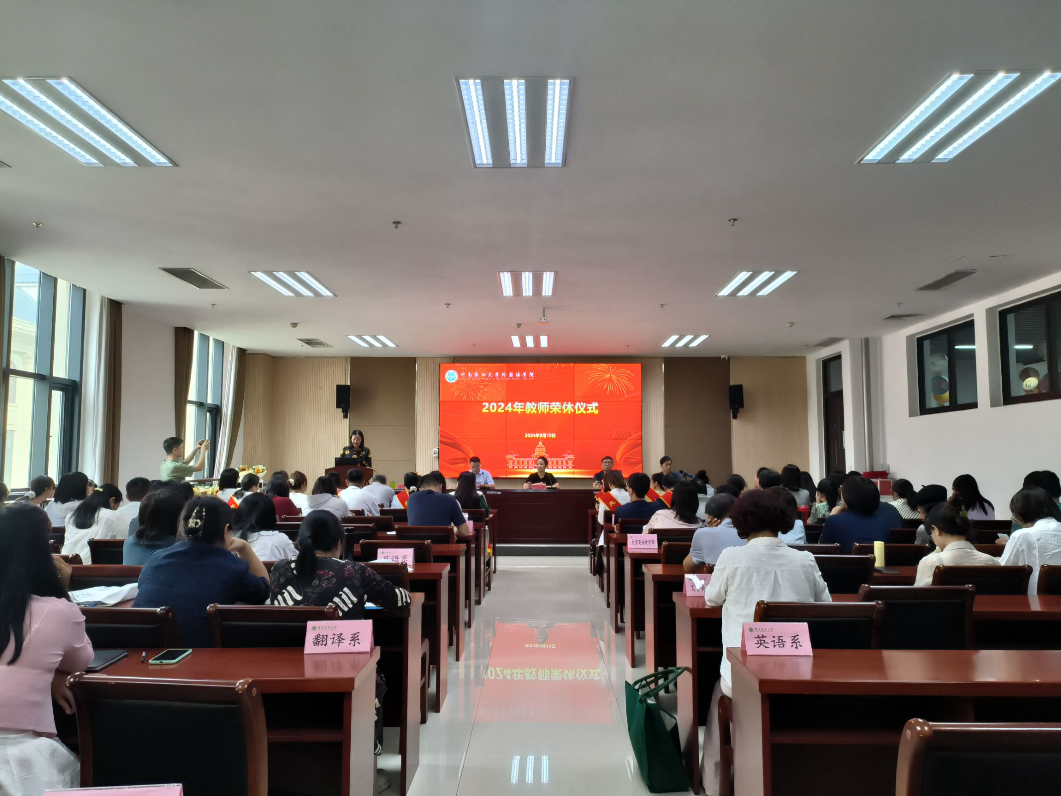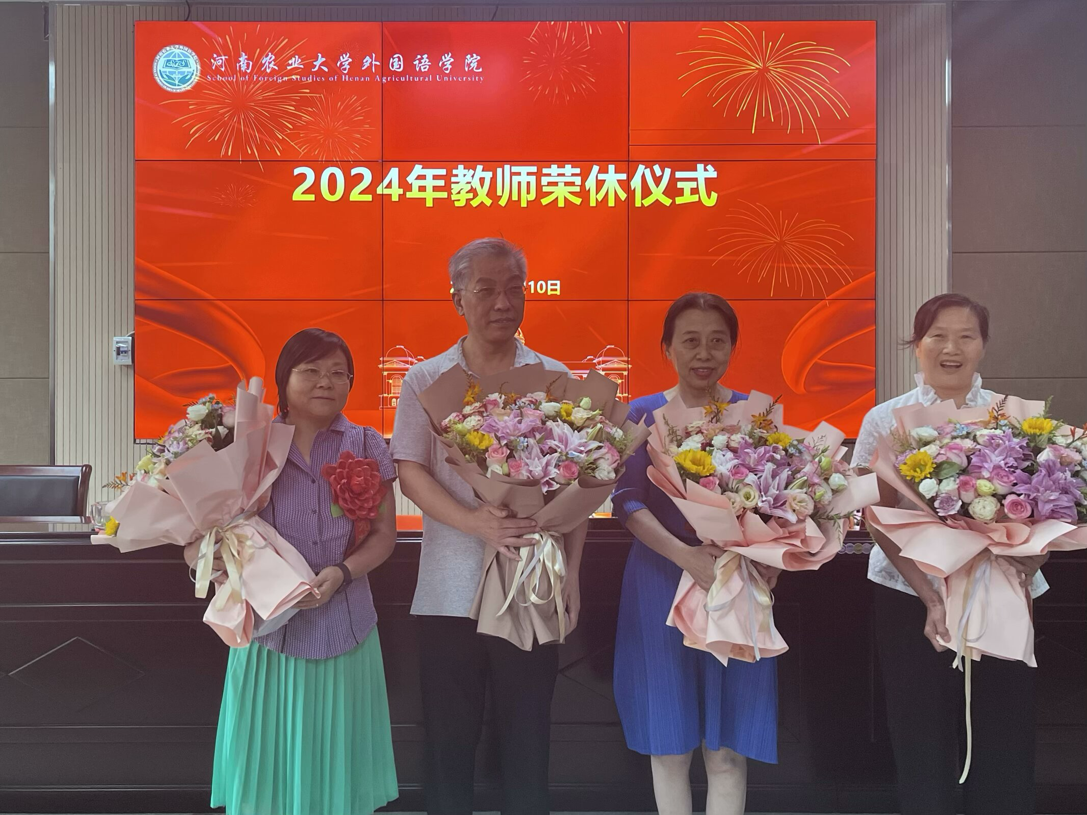 本网讯(审稿:杨鑫 供稿:冯超 杨若晴)岁月染芳华,桃李育芬芳。为弘扬尊师重教优良风尚,增强退休教职工的荣誉感、归属感和幸福感,激励青年教师传承老一辈爱岗敬业的教育情怀,9月10日,外国语学院于繁塔楼A324隆重举行荣休仪式。院党委书记王燕萍、院长张俊杰携院领导班子成员出席仪式,各系部室教师代表参加会议。仪式由院党委副书记杨鑫主持。