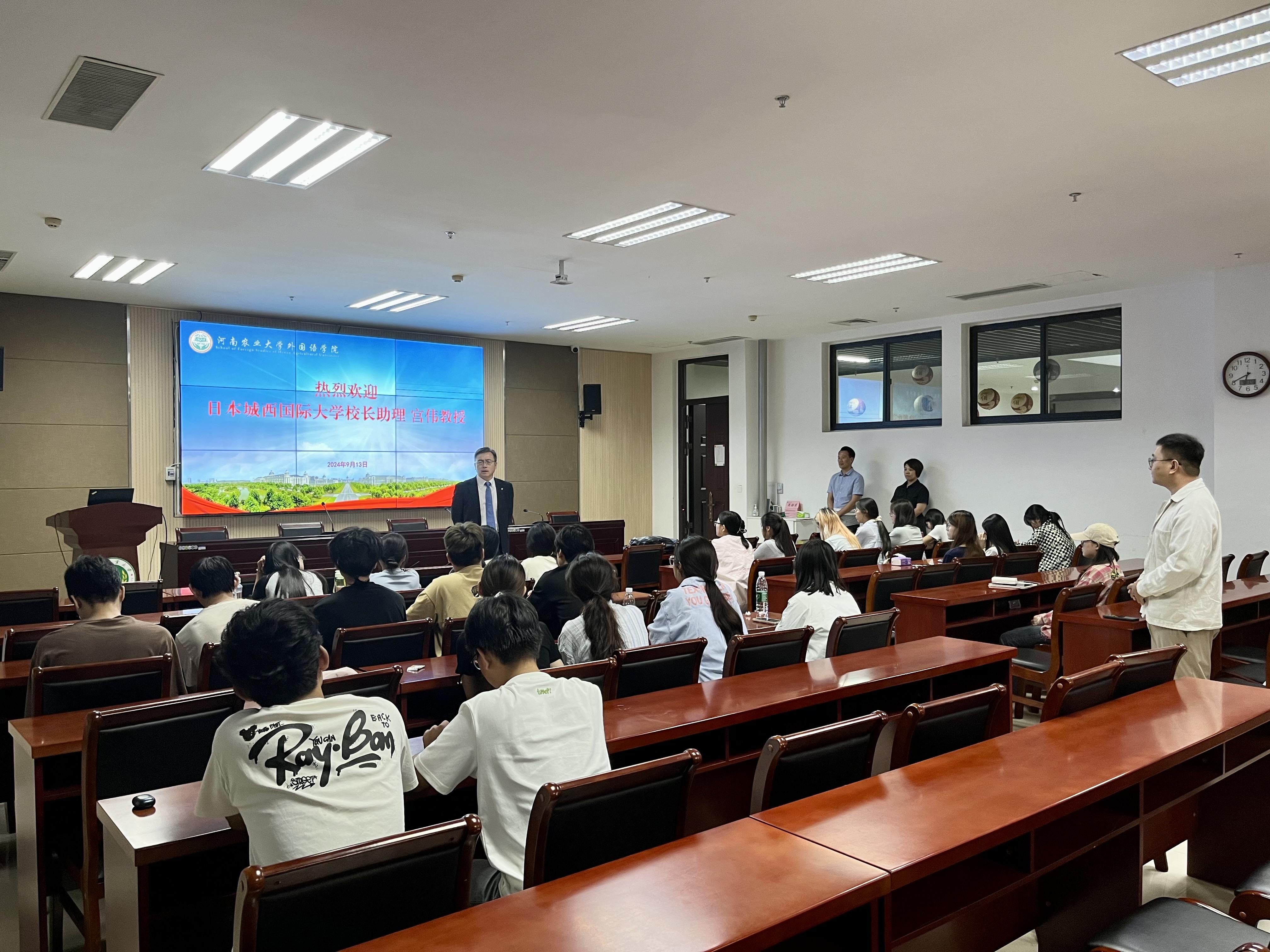 会谈结束后,宫伟给日语系学生作了关于日本城西国际大学访学项目的专题讲座。现场交流互动环节,他结合城西国际大学情况对语言要求、奖学金制度、申请条件等,解答了同学们关于赴日留学生活以及未来规划的疑惑。