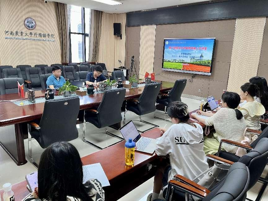 本网讯(审稿:张俊杰 供稿:马孝幸)6月11日下午,华南农业大学李占喜教授教授应邀做客外国语学院第75期励学大讲堂暨明德人文讲堂,并做了题为“语用翻译研究”的讲座。学院师生代表聆听了此次讲座,讲座由马孝幸主持。