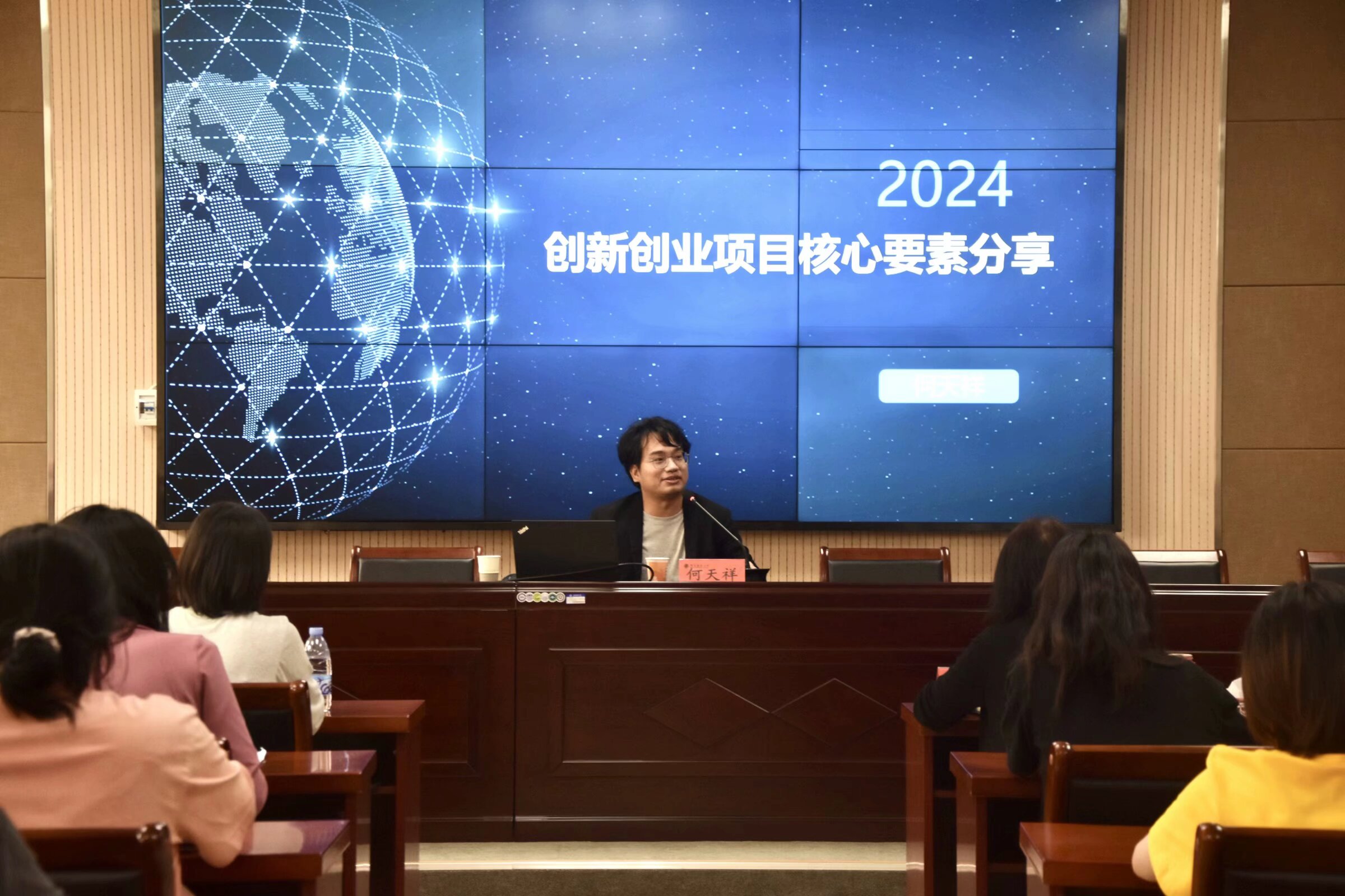何天祥以《创新创业项目核心要素》为主题,结合自身国赛评委经历,从挑战杯、互联网+大赛的具体细则出发,围绕优秀项目所需要具备的计划书、题目、项目、团队和路演五大要素依次展开,详细讲解了创新创业赛事中常见的问题。他重点强调,题目范围要精确,要抓痛点、以小见大。他鼓励同学们勇于挑战自己,以饱满的热情投入到该项目的运营中。互动环节中,老师同学们纷纷针对在参赛中遇到的难点、热点问题提出疑惑,何教授一一进行了严谨细致地解答,现场氛围十分热烈。