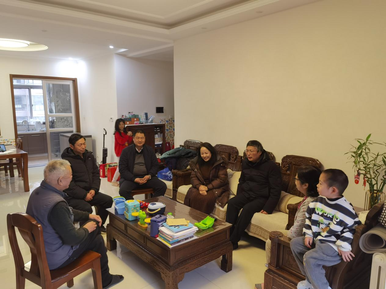 本网讯(审稿 :王燕萍 供稿 :郝晓峰)2月1日,在新春佳节到来之际,北方小年前夕,外国语学院党委书记王燕萍,院长张俊杰携学院领导班子走访慰问了在郑州的离退休等教职工,代表学院送去关怀和祝福,向大家拜年,并祝大家身体健康、阖家幸福、万事如意、龙年大吉。