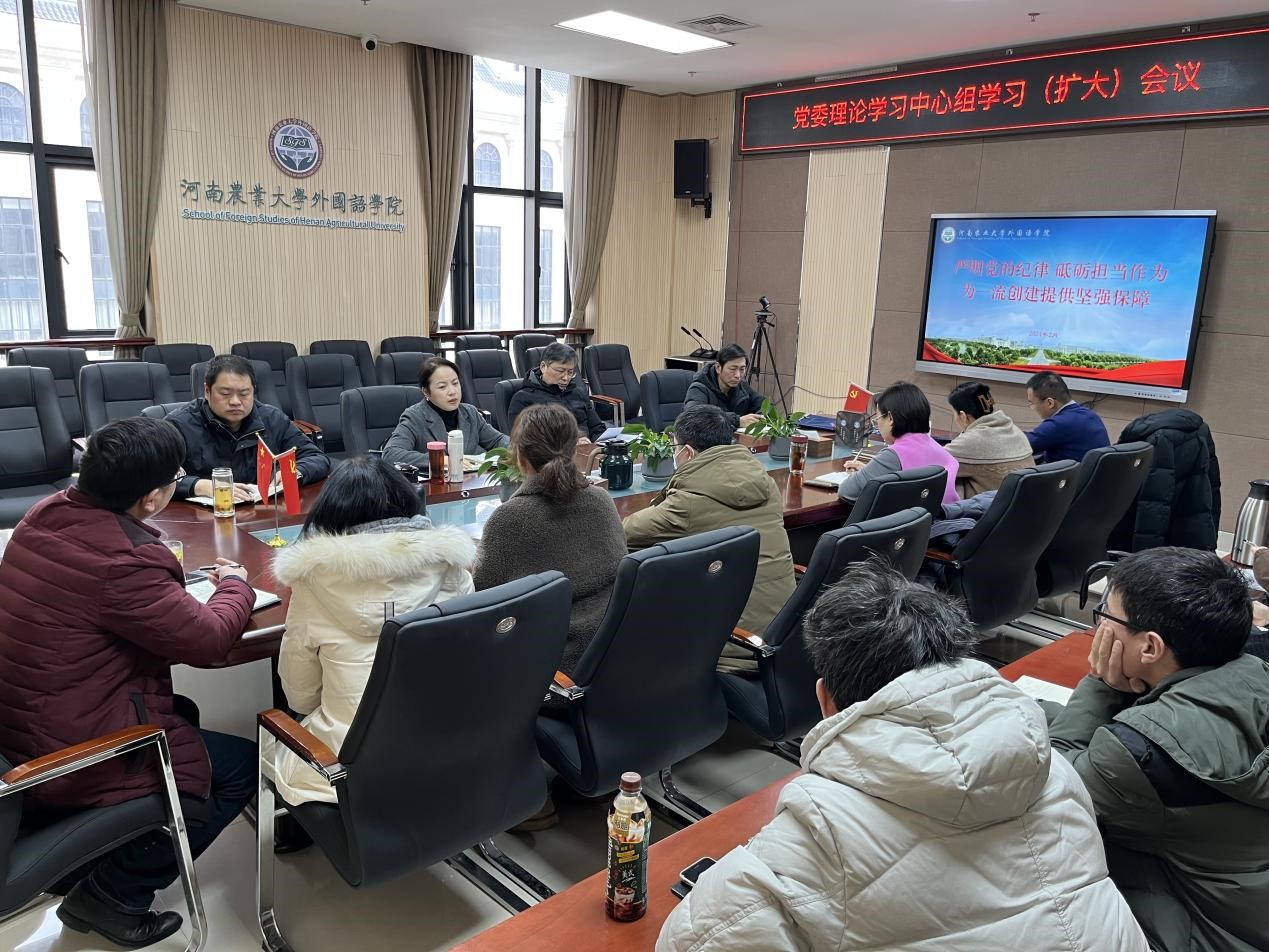 本网讯(审稿:王燕萍 供稿:郝晓峰 )2月23日,我院召开院党委理论学习中心组集体学习(扩大)会议,以“严明党的纪律 砥砺担当作为 为一流创建提供坚强保障”为主题,专题学习《中国共产党纪律处分条例》(以下简称《条例》)。学院党委委员和全体科级干部参加集体学习,会议由院党委书记王燕萍主持。
