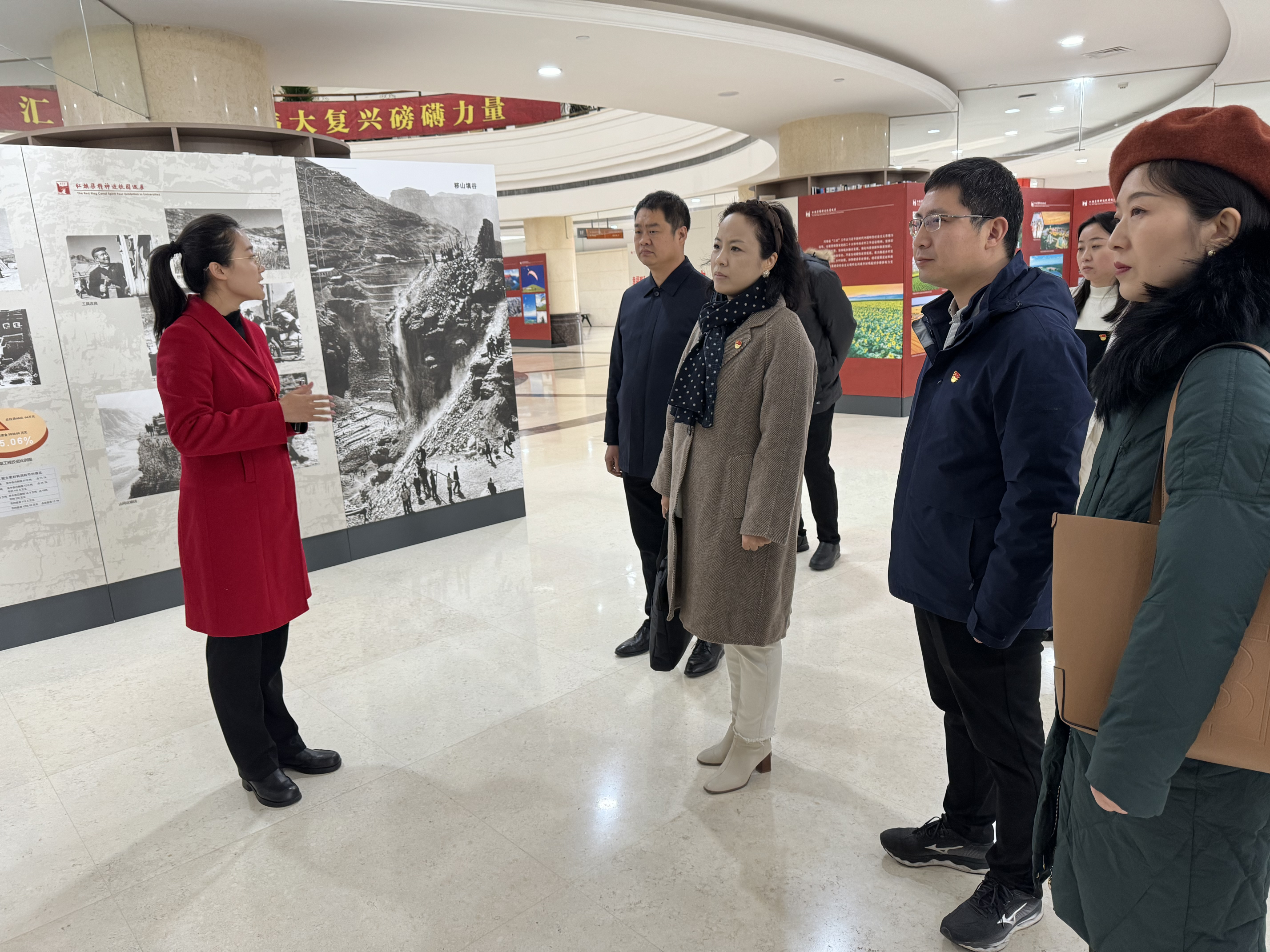本网讯(审稿:王启佩 供稿:冯超 许菲)为深入学习宣传贯彻习近平新时代中国特色社会主义思想和党的二十大精神,弘扬革命精神,赓续红色血脉。12月1日,外国语学院党委书记王燕萍携院领导班子成员、大学生创新创业青年导师工作室教师代表、学生代表参观“红旗渠精神进校园巡展”。