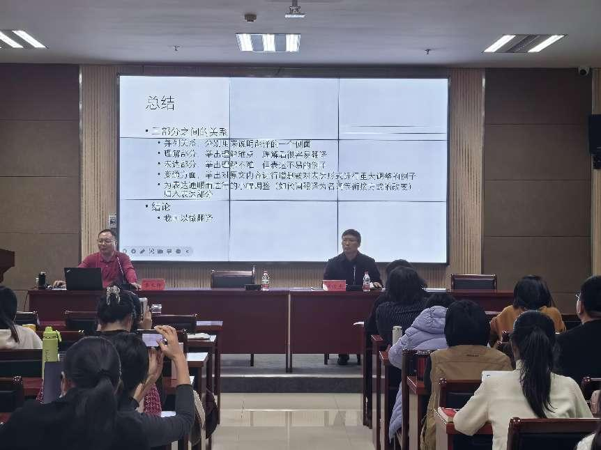 本网讯(审稿:张俊杰 供稿:马孝幸)12月8日,北京外国语大学李长栓教授应邀做客我院第70期励学大讲堂暨明德人文讲坛,做了题为“如何撰写MTI翻译实践报告”的报告会。报告会由外国语学院院长张俊杰教授主持,我院党委书记王燕萍及师生参加了此次报告会。