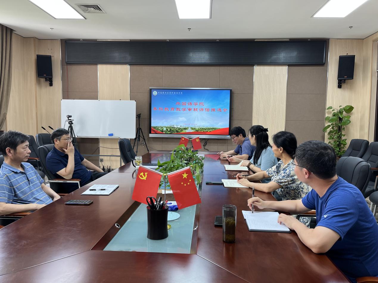 本网讯(审稿:张俊杰 供稿:吴玲)2023年是外国语学院的“贯彻之年、统筹之年、奋进之年”。为深入贯彻学习党的二十大精神,全面落实立德树人根本任务,迎接新一轮本科教育教学审核评估,7月10号,学院在繁塔楼A320会议室召开本科教育教学审核评估自查自评自建工作推进会。会议由院长张俊杰主持, 副院长张卫东及相关部门负责人参加了会议。