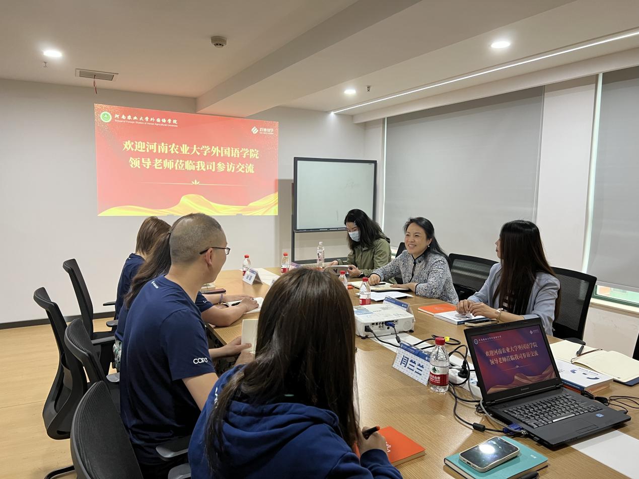 本网讯(审稿:王燕萍 供稿:冯超 张仪婷)为了加强院企合作交流,推动就业与培养有机联动,促进人才供需有效对接,5月25日上午,外国语学院党委书记王燕萍带队赴启德教育郑州分公司开展“访企拓岗”活动,英语系、日语系、团委相关同志参加活动。