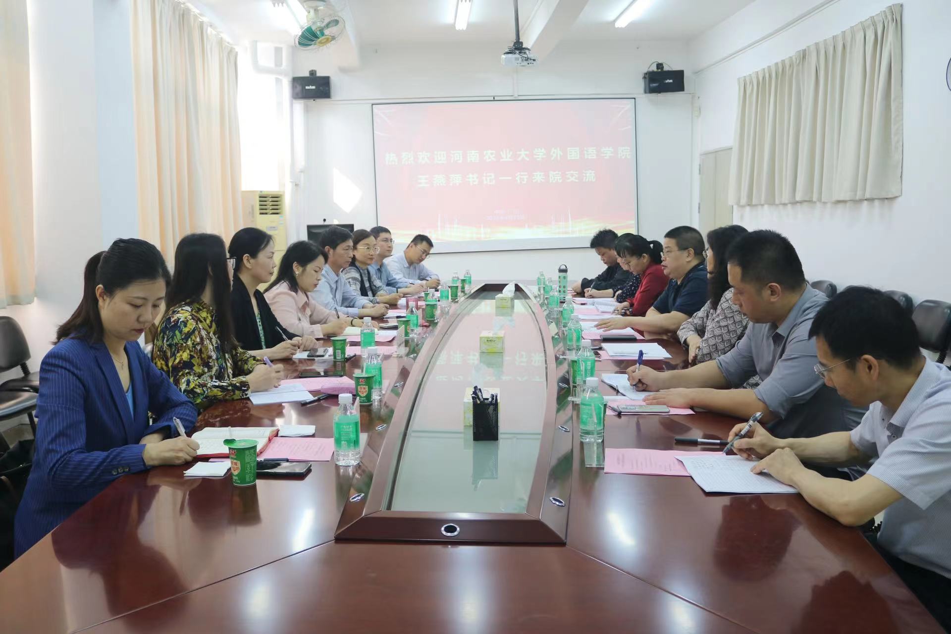 本网讯(审稿:王燕萍 供稿:冯超)3月23日上午,院党委书记王燕萍带领班子成员、各教工党支部书记和团委相关负责同志赴华南农业大学外国语学院调研交流。华南农业大学外国语学院党委书记谢韶锋、学院班子成员、英语系、公共外语系、外语教学实验中心、学生工作办公室相关负责同志参加活动,座谈会由谢韶锋主持。