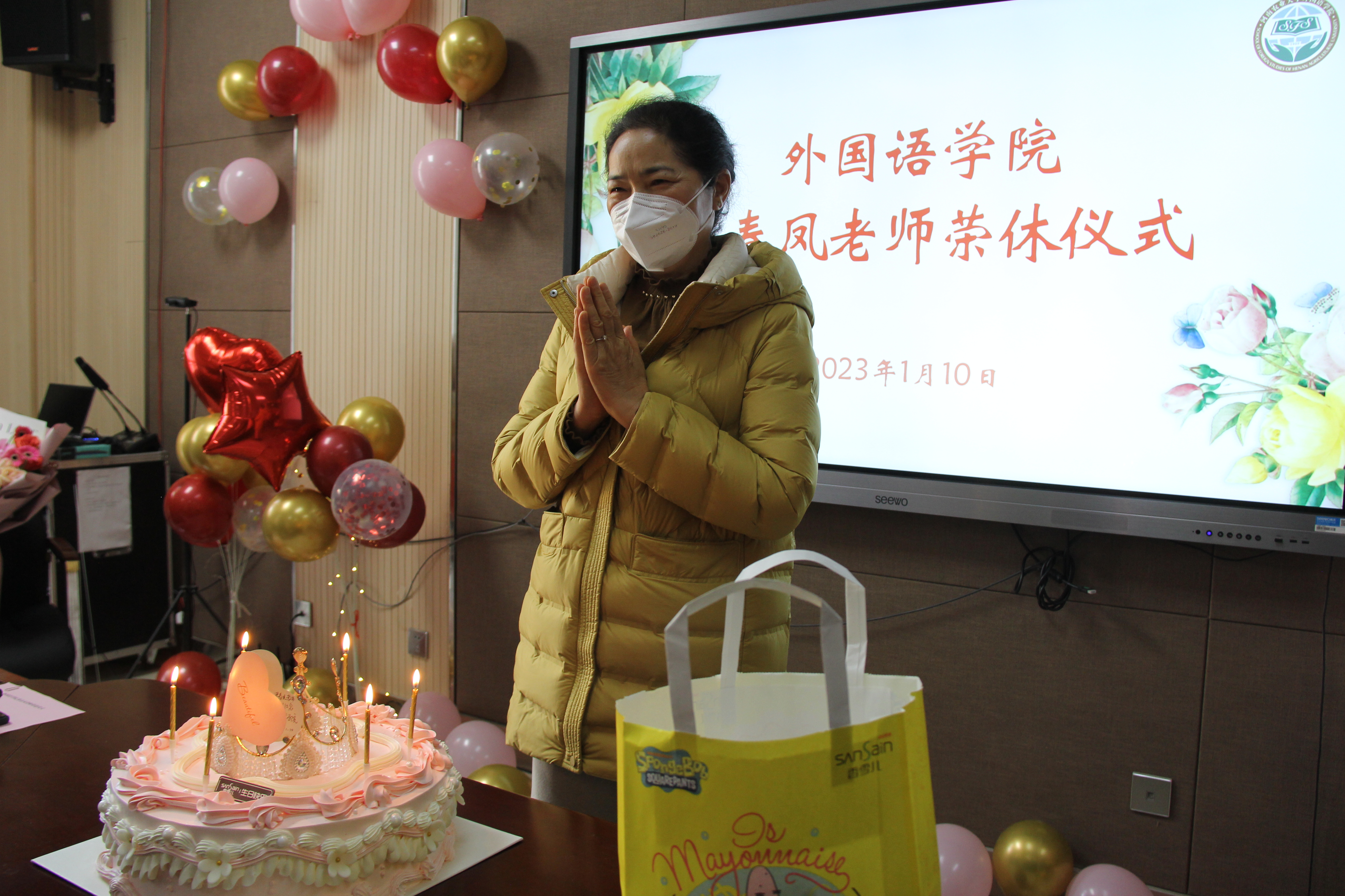 罗春凤老师感谢学院对她多年来的关心和支持,感动于在农大外国语学院这段最珍贵的时光。她表示,能够实现自己教书育人的人生理想是十分幸运的,虽然退休,但仍会一如既往关注学院发展,并祝愿学院事业蒸蒸日上,为祖国培养出更多的外语人才。
