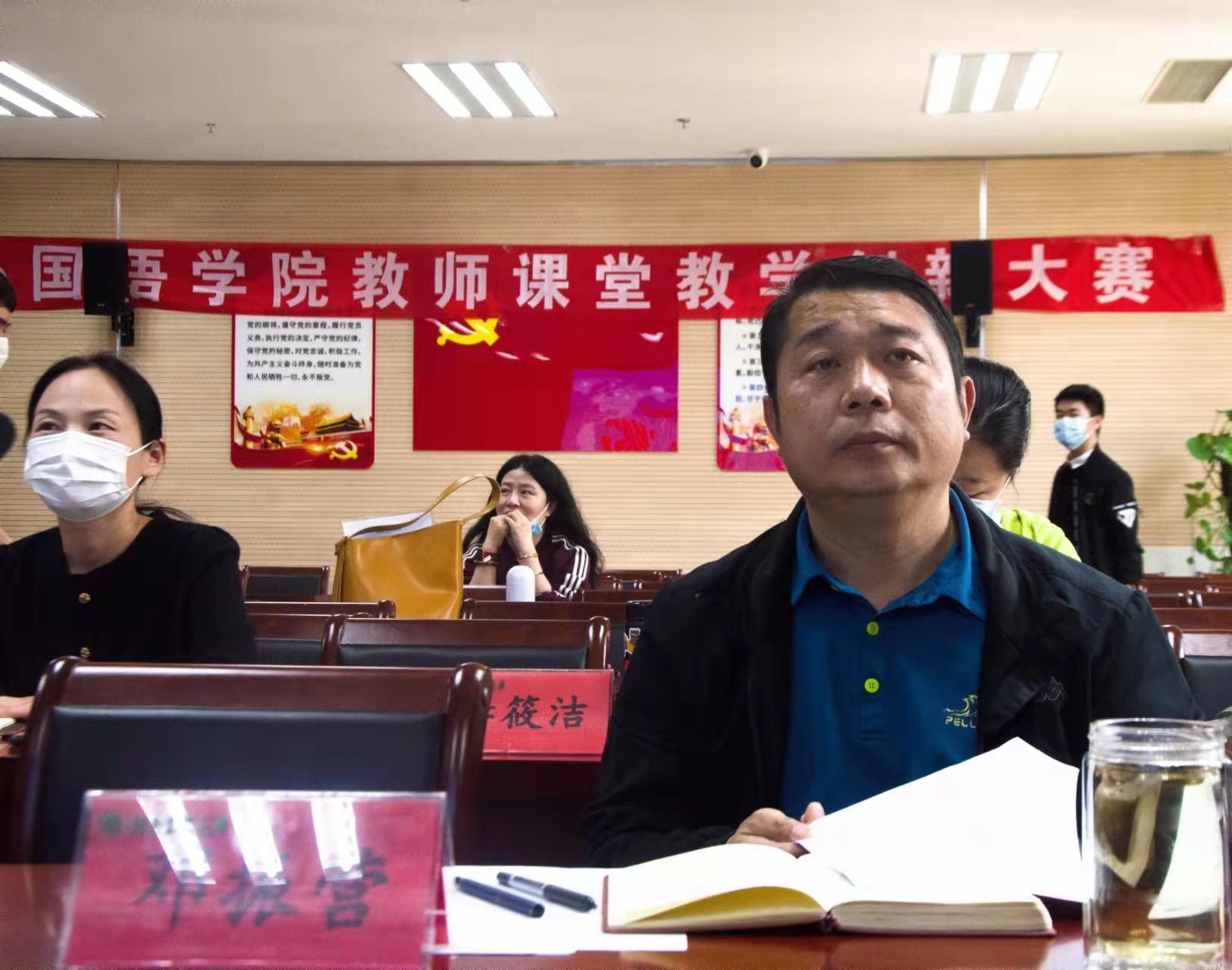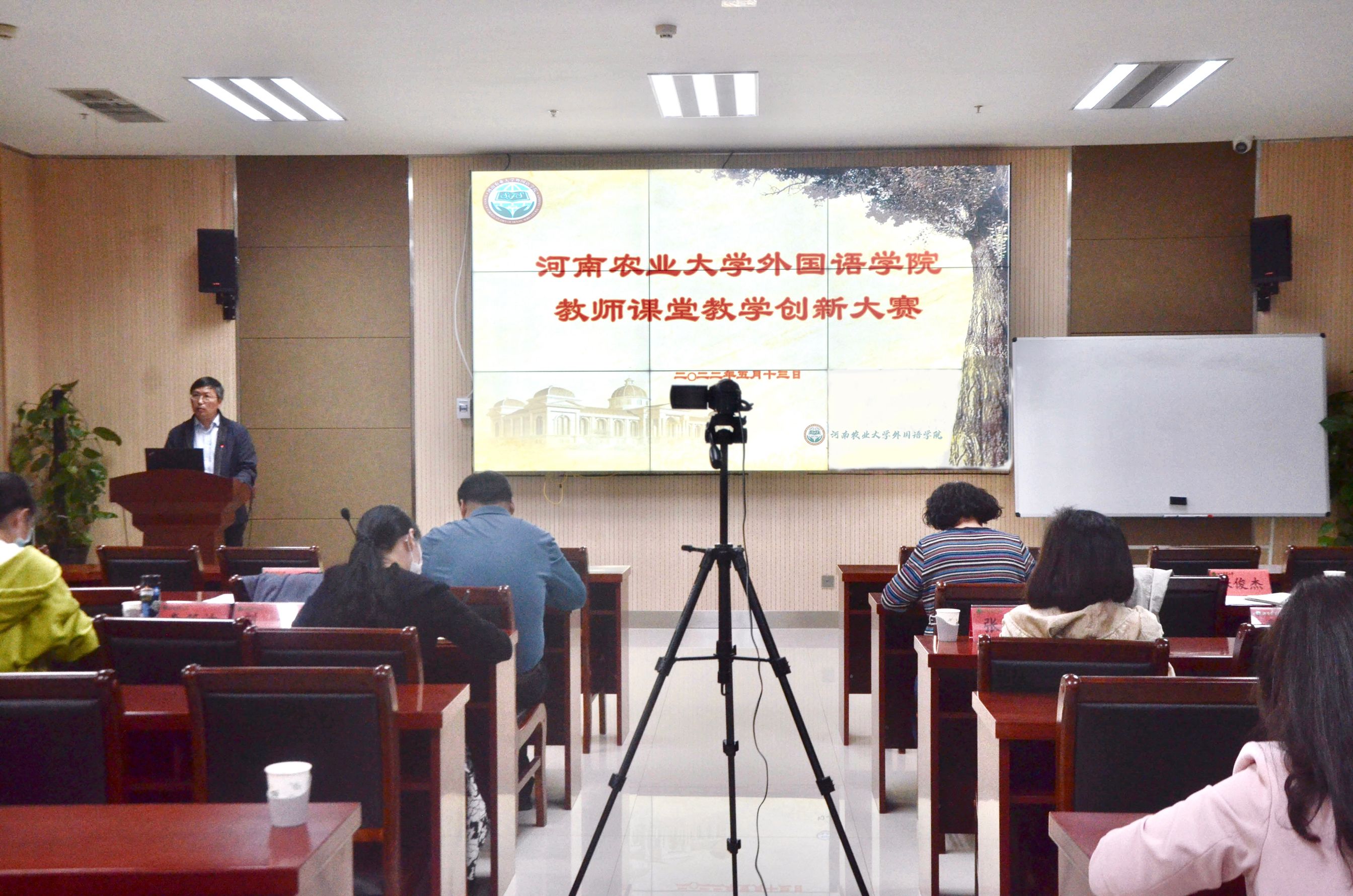 本网讯(审稿:吴玲 供稿:张仪婷)为丰富学院的教学内容,提高教师课堂教学创新能力,促进学院教学质量的提高,5月13日下午,外国语学院于龙子湖校区繁塔楼A324会议室举办教师课堂教学创新大赛。教务处副处长王金铎莅临指导,校教学督导郑笑平,院教学督导张冬梅、院党委书记邓振营以及各系部教授代表组成评委团,学院教工代表观摩比赛,大赛由院长张俊杰主持。