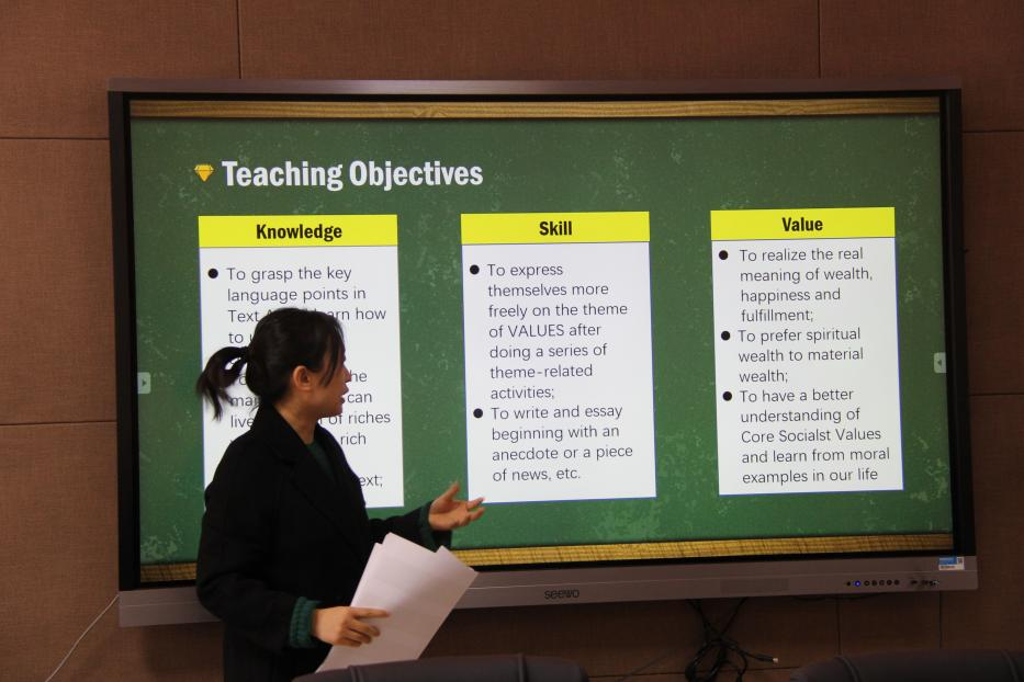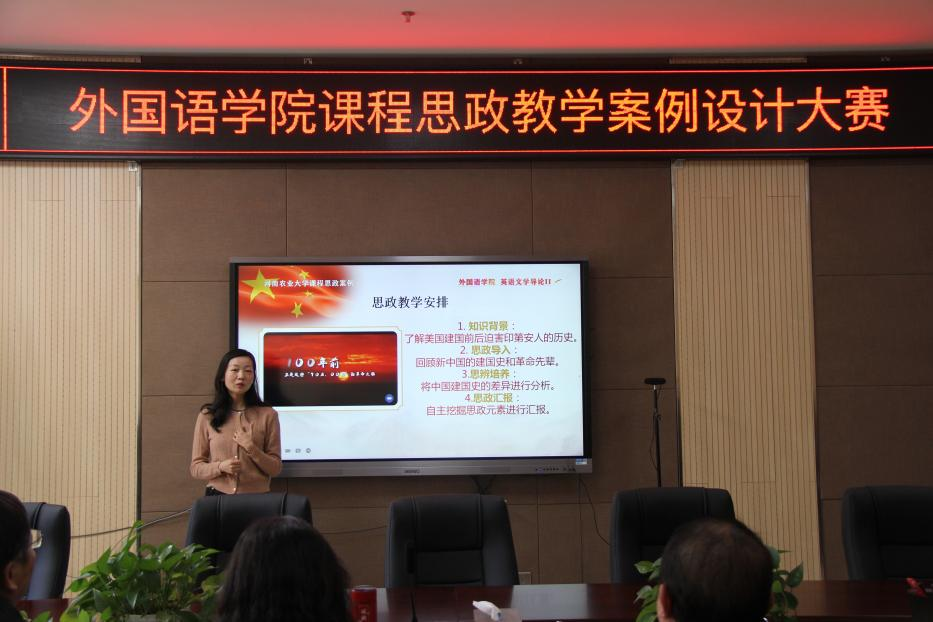 本网讯(审稿:郝晓峰 供稿:吴玲)为推进我院课程思政教育教学体系建设,提升立德树人成效,更好发挥课程建设“主战场”、课堂教学“主渠道”作用,形成各类各门课程协同育人格局,3月1日下午,外国语学院举办了“课程思政”教学案例设计大赛初赛选拔暨教学观摩交流活动,学院党委书记邓振营、院长张俊杰、全体教授等17人担任评委。