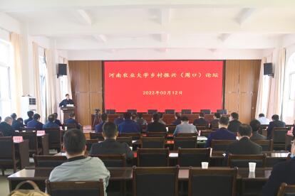 本网讯(审稿:王启佩)3月12日,由河南农业大学校友会主办,外国语学院和周口校友联络处承办的“推进校地融合 服务乡村振兴”(周口)校友论坛在周口市举行。副校长康相涛,周口市委二级巡视员史豪,校友代表、学校相关部门负责人和院班子成员参加活动,86级校友夏立文代表上一届校友联络处实事求是的回顾和总结了2012年校庆以来的周口校友联络工作。他表示,周口校友联络处积极联络本地校友,积极搭建校友与学校合作发展的桥梁,增进了校友对母校的情感认同,在促进学校发展、提高学校的知名度、服务地方经济社会发展等方面发挥了重要作用。