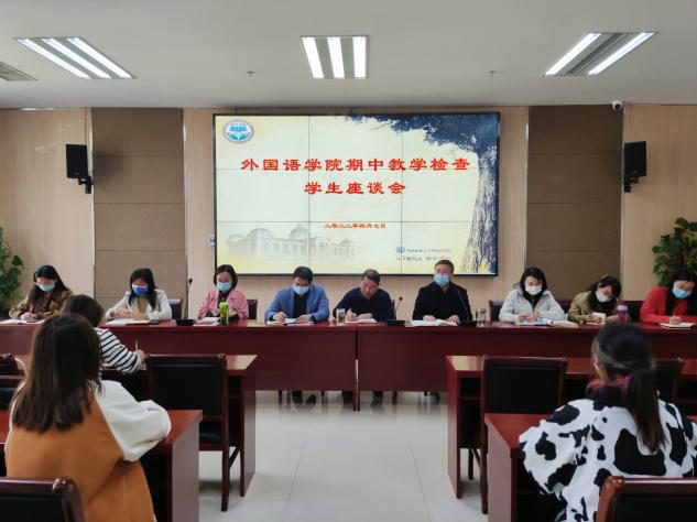 本网讯(审稿:陈桃 供稿:黄湘)为全面掌握和了解学院教学情况,加强管理,促进教学质量的提升,4月7日中午,外国语学院于繁塔楼A324会议室召开期中教学检查学生座谈会。院领导班子、各系部室主任以及各年级学生代表参加此次会议,会议由外国语学院院长张俊杰主持。