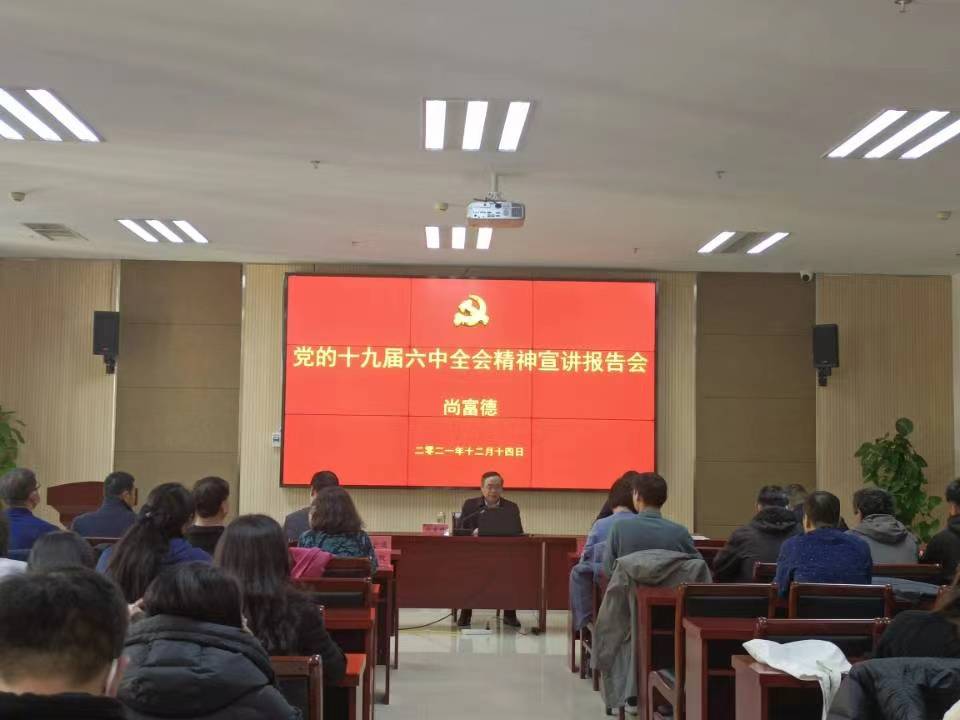 尚富德立足党的百年奋斗历程和实现中华民族伟大复兴的中国梦,围绕“十九届六中全会概况及重要意义、《决议》的主要内容及精神、认真学习贯彻六中全会精神”等三个方面进行论述,对“一个主题”“一个根本问题”“两个确立”“三次飞跃”“四个历史时期及主要任务”、“五大历史意义”、“十个明确”、“十个坚持”和“十三个伟大成就”等重要内容进行了深度解读,为各单位下一阶段深入学习全会精神提供了方向指导和根本遵循。