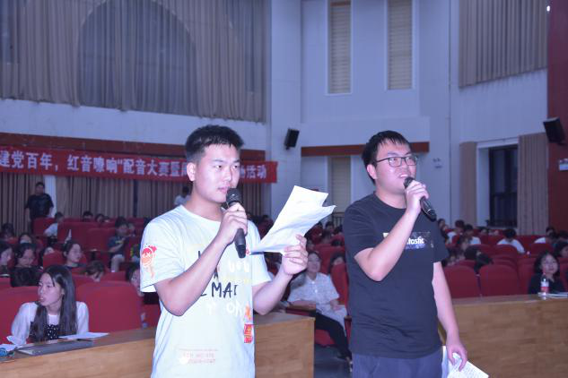 本网讯(审稿:陈桃 供稿:黄湘)为庆祝建党100周年,讴歌中华民族伟大复兴的百年奋斗历程,外国语学院于6月4日晚7点在龙子湖校区繁塔楼CD间大教室3举办了“建党百年,红音嘹响”配音大赛暨周末文化广场活动。外国语学院教师张建宇、朱婧,院团委副书记陈桃、冯超、辅导员穆君怡担任了此次比赛的评委。