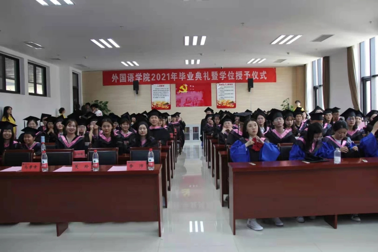 本网讯(审稿:王启佩 供稿:陈桃)数载励志求学路,一朝鲲鹏展翅飞。6月11日下午,外国语学院于龙子湖校区A座324举办了2021年毕业典礼暨学位授予仪式。院领导班子及学术委员会成员、各系主任、毕业班班主任携2016级、2017级毕业生代表参加。仪式由院党委副书记王启佩主持。