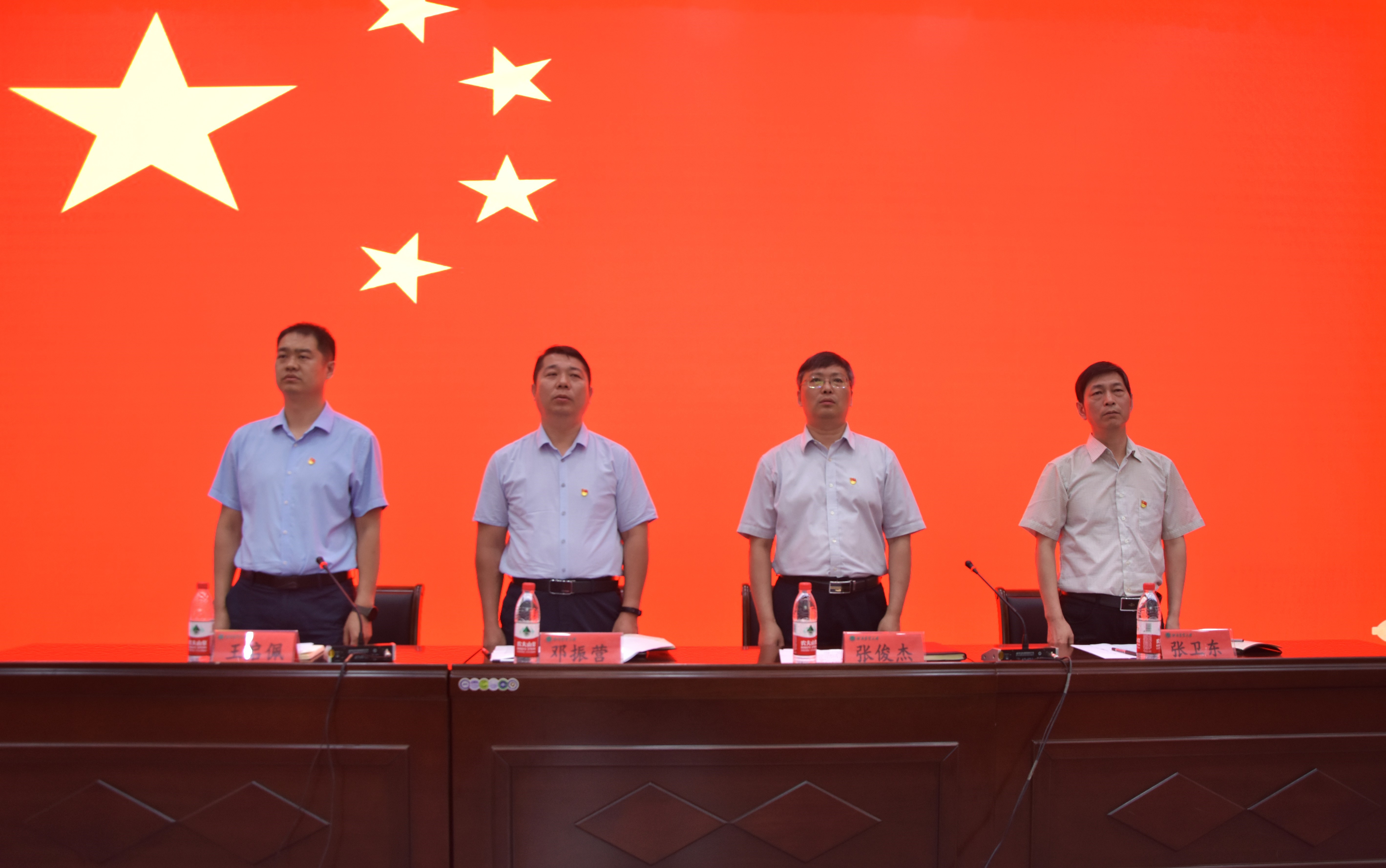 在雄壮的国歌声中,大会正式开始。院长张俊杰和副院长张卫东先后宣读了《外国语学院关于表彰2021年度优秀共产党员、优秀班主任、最美教师等先进个人的决定》和《外国语学院关于表彰2021年度先进集体和先进个人的决定》。在热烈的气氛中,院领导为受到表彰的先进集体和个人颁奖,向受表彰的师生表示衷心的祝贺,并肯定和赞扬了他们在工作和学习中的优异表现。随后,“优秀共产党员”教师代表余亮、“最美教师”代表柴奇、“优秀班主任”代表张建宇及“三好学生”代表18级日语二班张引倩分别发言,他们表示今后将再接再厉、立足本职、积极进取,共筑学院的新辉煌。接着,院党委书记邓振营带领全体党员们面对党旗庄严宣誓。