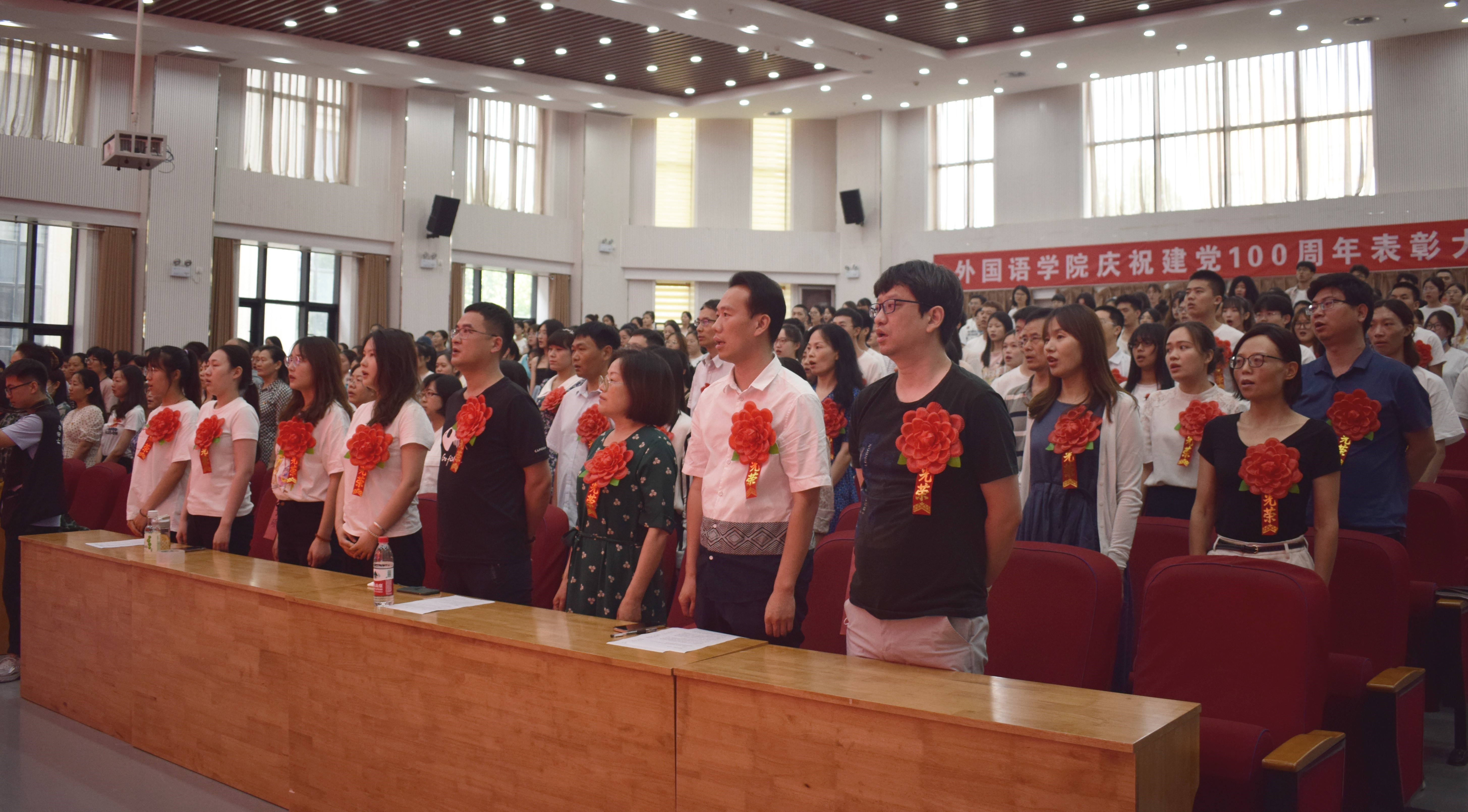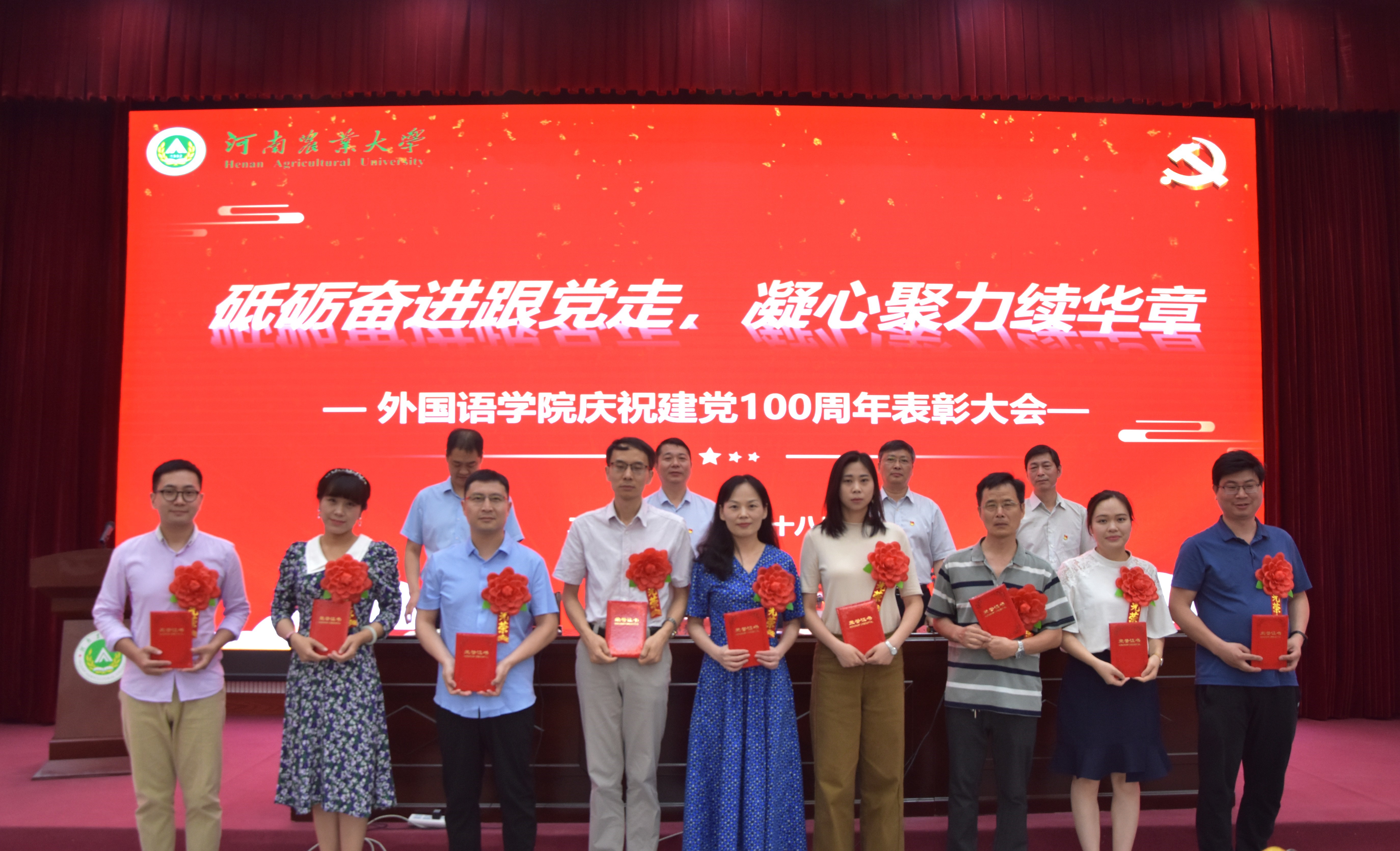 本网讯(审稿:王启佩 供稿:陈桃)百年征程波澜壮阔,百年初心历久弥坚。6月28日下午,外国语学院在龙子湖校区繁塔楼AB间大教室一隆重召开庆祝建党100周年表彰大会。外国语学院领导班子及师生代表参加本次大会。会议由学院党委副书记王启佩主持。
