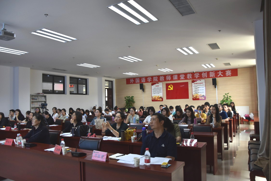 我院共9位教师参加了此次选拔赛,比赛共分为三个环节: 说课、模拟授课、评委提问。比赛期间,参赛教师精神饱满充沛,仪态自然大方。他们结合个人的教学风格和专业特色,利用深厚的专业功底,辅之以熟练的现代教学技术,通过标准流利的外文表达和图文并茂的精美课件向大家展示了外语课堂的别样风采。其中,张乾老师以Values为主题详细地阐述了价值观的真正内涵,并自然地融入了社会主义核心价值观,不仅丰富了教学内容,又拓展了教学的广度和深度。随后,张保仓老师围绕Globalization这一热门话题,通过音视频播放以及图片展示生动具体地介绍了全球化的趋势及影响。牛烁老师以A Woman Can Learn Anything a Man Can为题向大家介绍了性别歧视现象,通过招聘广告以及相关纪录片的展示,她倡导消除性别偏见,平等对待每一个人。老师们生动形象、深入浅出的授课方式充分展现了我院教师独一无二的讲课风采、高质量的教学水平、新颖的教学思维以及扎实的知识储备。