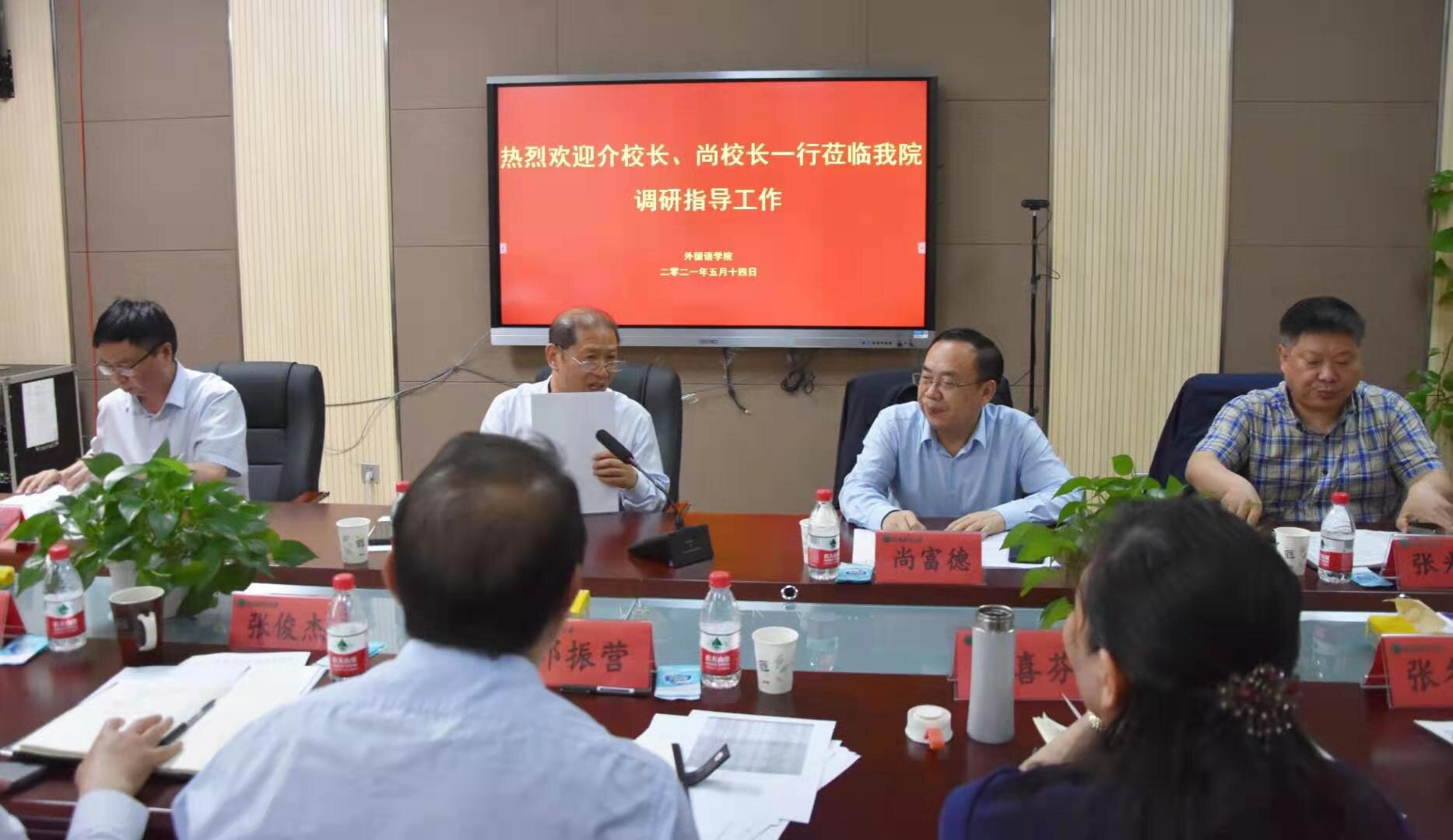 本网讯(审稿:邓振营 供稿:郝晓峰 黄湘 )5月14日上午,校长介晓磊、副校长尚富德到外国语学院调研指导工作。外国语学院班子成员与教师代表30余人参加了调研座谈会。校长办公室、发展规划处负责人陪同调研。尚富德主持座谈会。