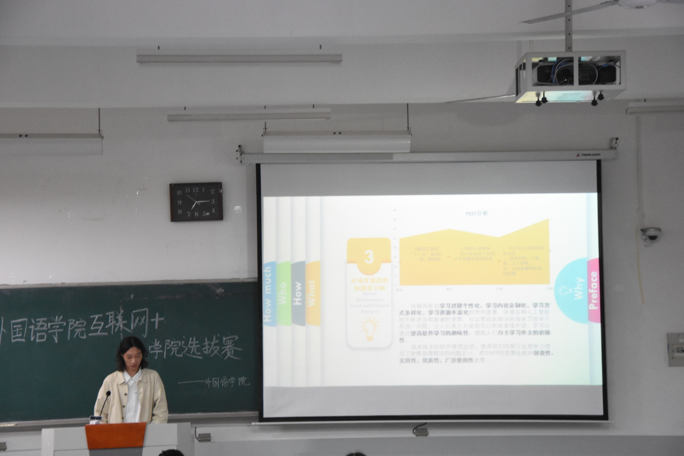 本网讯(审稿:陈桃 供稿:黄湘)为激发学生创新创业热情,培养学生的创新精神,树立创业意识,外国语学院于5月19日晚7点在龙子湖校区繁塔楼C202举办了2021学年度“互联网+”大学生创新创业大赛。团委副书记陈桃、冯超、辅导员穆君怡携各班学生代表出席此次大赛并担任评委。