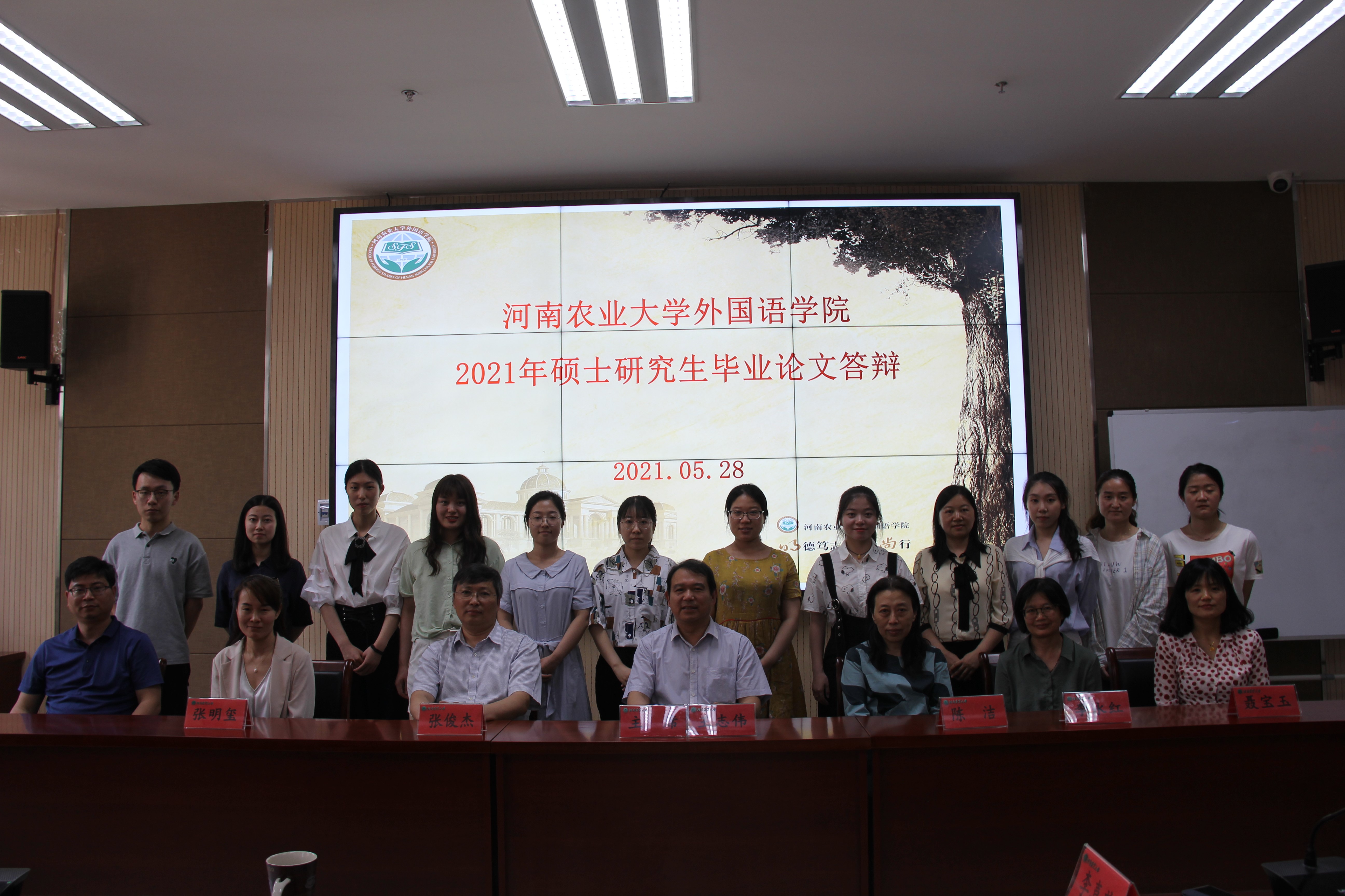 本网讯(审稿:聂宝玉 供稿:邢启源)2021年5月28日上午8点至下午3点,河南农业大学外国语学院2021届硕士研究生学位论文答辩会在龙子湖校区繁塔楼A324举行。本届硕士研究生毕业论文答辩邀请郑州大学外国语与国际关系学院王志伟教授担任答辩主席,张俊杰院长、李喜芬、张明玺、陈洁、李永红、聂宝玉等硕士生导师担任答辩委员。参与答辩的学生共有13人。