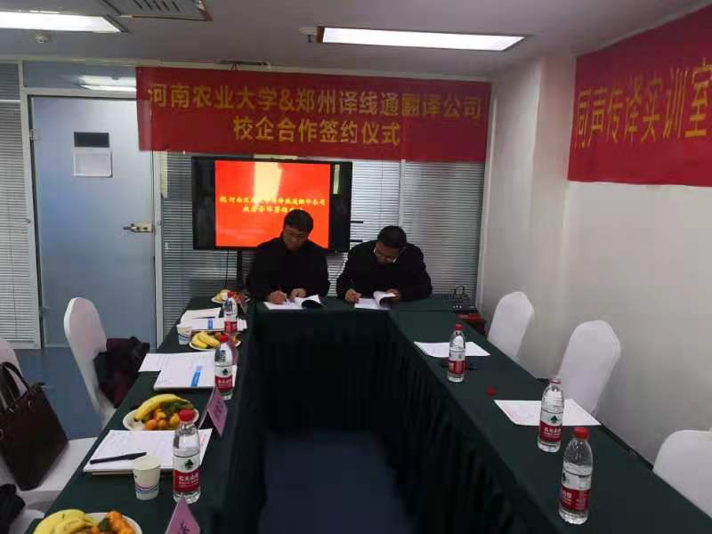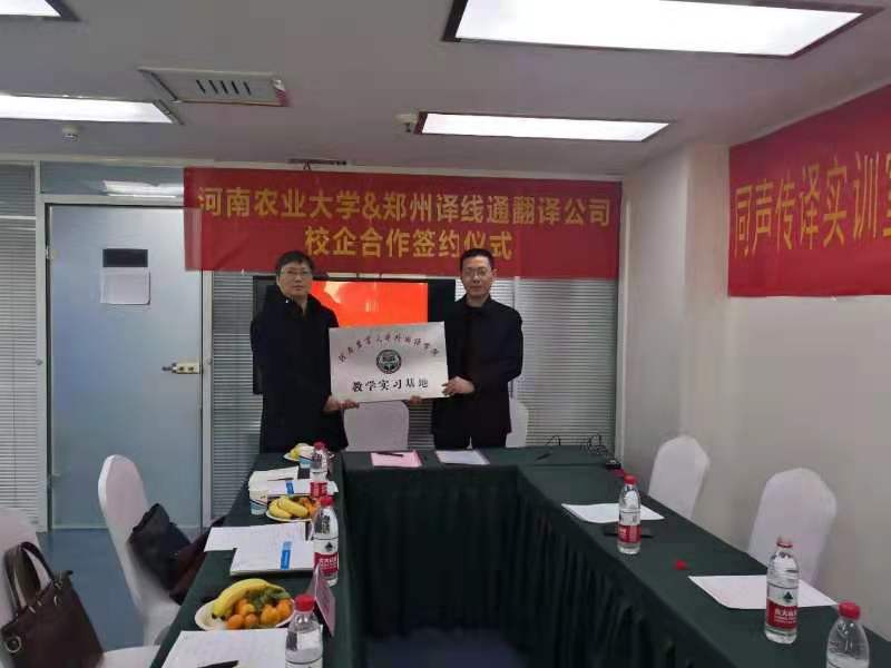张俊杰和张富磊分别代表校企双方签署了翻译实习实训基地合作协议书,举行了实习基地挂牌仪式。双方表示希望以签约仪式为契机,在人才培养、语言服务、科研合作与交流等方面开展全面战略合作,共同致力于提升外国语学院为河南地方经济社会发展提供语言服务的能力和水平。