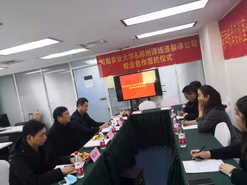 (通讯员:马孝幸)12月22日上午,外国语学院院长张俊杰教授带领学院领导班子及翻译中心(MTI)一行四人赴郑州译线通翻译有限公司考察交流,洽谈校企合作事宜,并举行翻译实习实训基地签约及挂牌仪式。郑州译线通翻译有限公司总经理张富磊、副总经理翟小娟及相关负责人等参加了会谈。