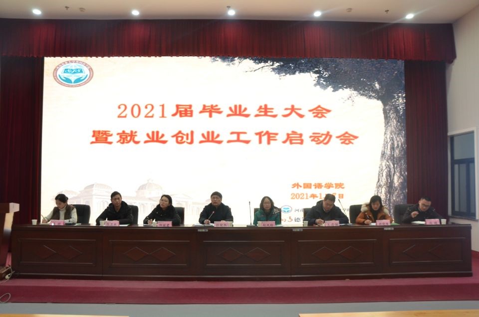 本网讯(审稿:冯超 供稿:黄湘 王伊璇 常青)为引导毕业生了解就业形势,把握就业机会,推进学院毕业生工作有序开展,我院于1月7日下午4点在龙子湖校区繁塔楼大教室一召开了“2021届毕业生大会暨就业创业工作启动会”。院长张俊杰、院党委副书记王启佩、副院长张卫东、英语系主任赵凤玲、日语系主任邱丽君、院党政办主任郝晓峰、院团委副书记陈桃、冯超携2021届全体毕业生出席了此次会议。