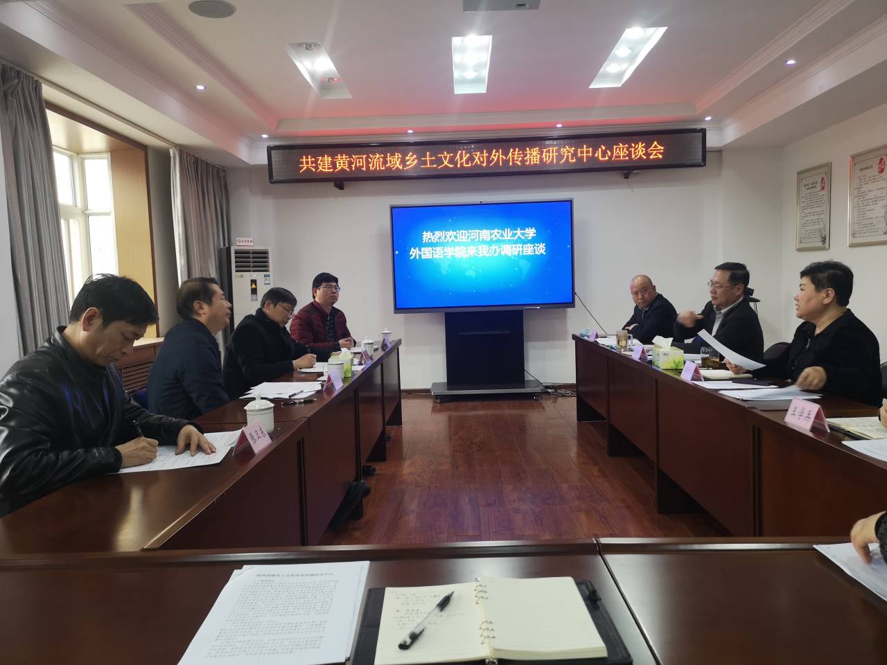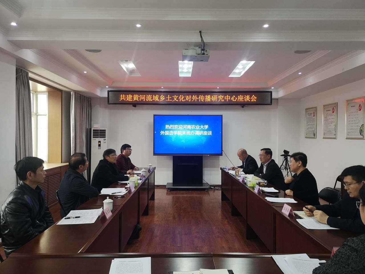 张树忱主持座谈会,对邓振营、张俊杰一行表示热烈欢迎。潘新红代表市委外办致辞,介绍了郑州市委外办的基本情况及近年来取得的突出成绩,他表示希望通过双方沟通交流,合作共建研究中心,为黄河流域乡土文化对外传播做新的贡献。
