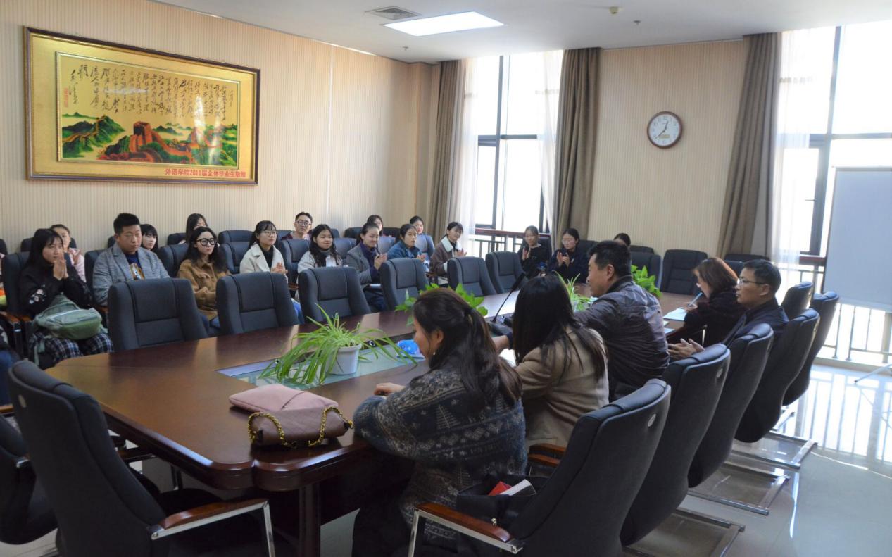 本网讯(审稿:李沛 供稿:张丹丹)为深入了解学生对学院教学工作的意见和建议,进一步提高教学质量,保障下阶段教务工作的顺利有序开展,11月21日中午12:30,学院在龙子湖校区繁塔楼A320和A318同时召开了2019年度期中座谈会。副院长张俊杰、日语系主任邱丽君、英语系副主任宋扬等携全院学委出席了本次会议。本次会议由李沛主持。