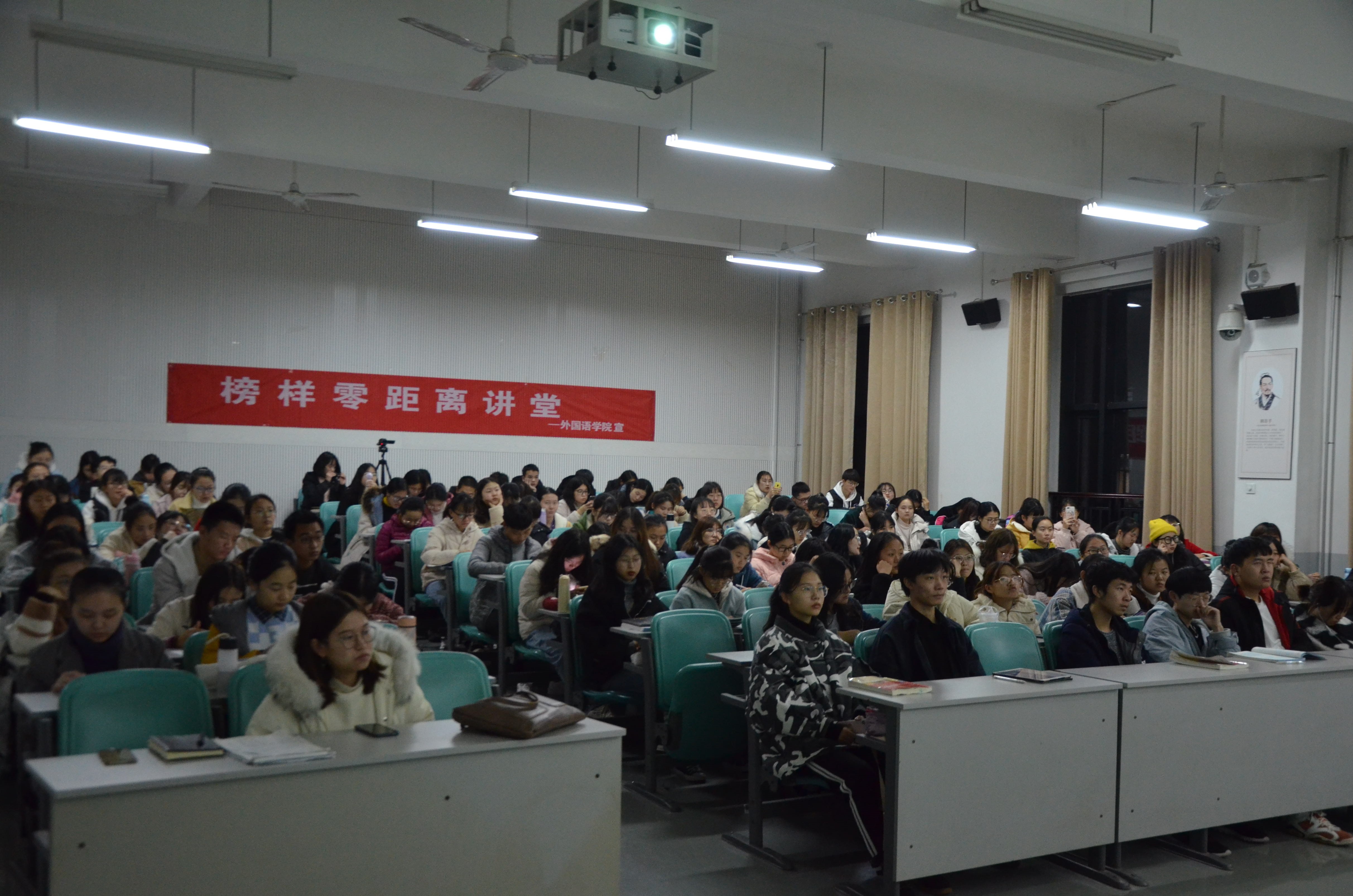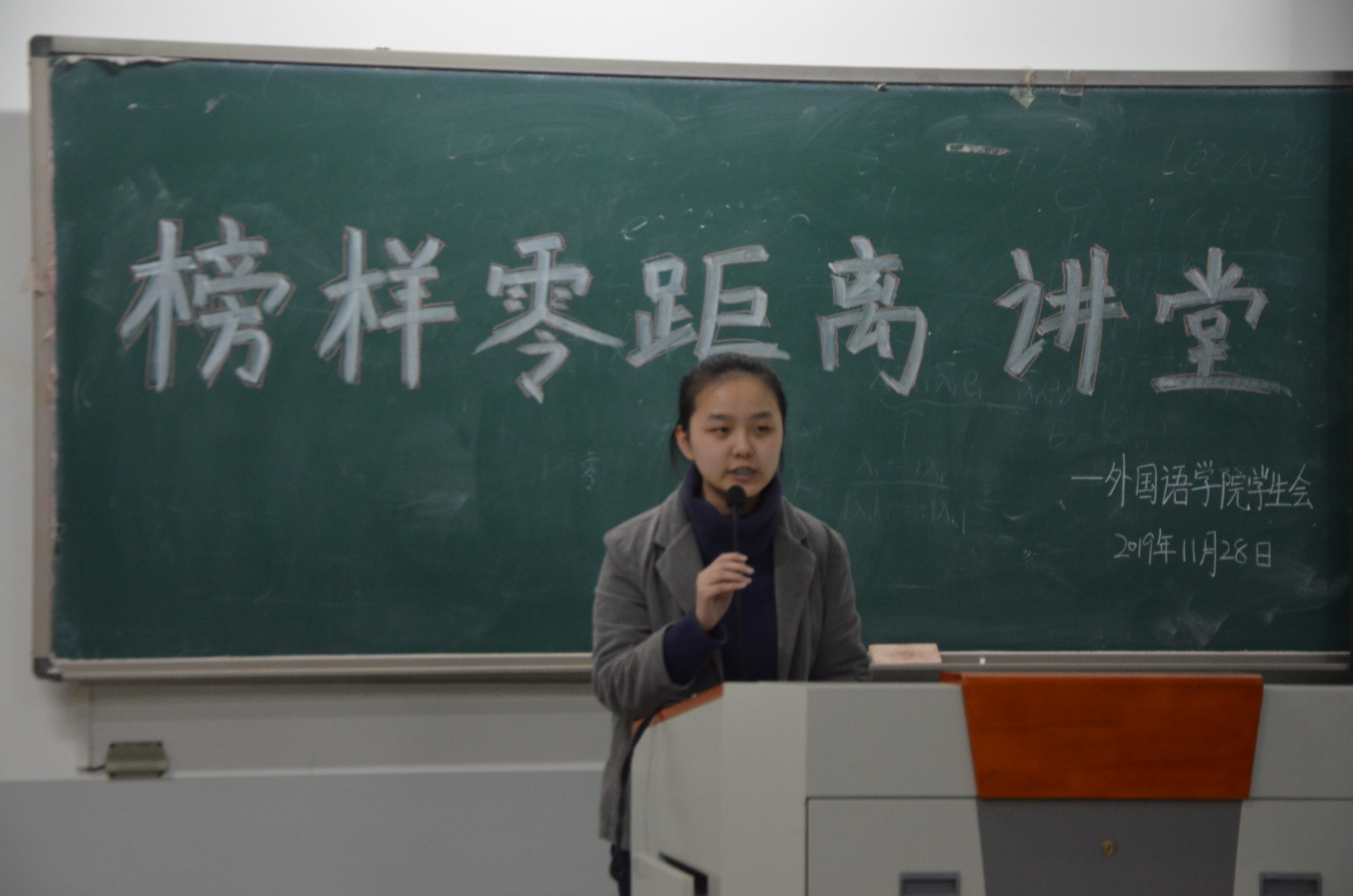 本网讯(审稿:李沛 供稿:梅如意)以身教者从,以言教者讼。为发挥榜样的先锋模范作用,提高我院学子学习的积极性和主动性,11月28日晚上七点,学院于龙子湖校区繁塔楼C306教室举办第十七期榜样零距离讲堂。16级英语一班曹锦秀、16级商务英语二班王诗雨、17级英语一班周瑞文及17级商务英语三班李歌畅应邀担任主讲人。