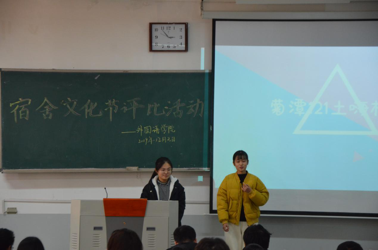 活动伊始,主持人简要介绍了本次比赛的评分细则以及打分方式,随后,在热烈掌声中本次活动正式拉开序幕。本次比赛共有28个宿舍参与竞选,各宿舍负责人借助精美的PPT,围绕成员组成、宿舍文化、宿舍装扮、宿舍荣誉等展现了其宿舍的独特魅力和别样风采。精美简约的窗帘、随风飘动的风铃、可爱温馨的墙纸,宿舍在同学们的精心装扮下焕然一新,更加温暖舒适。聚餐时的快乐欢喜、军训时的苦中作乐、宿舍里的嬉戏打闹,一张张洋溢着笑容的合照,正是各个宿舍成员和谐相处、真诚相待的最好体现。更有宿舍精心制作的小视频,记录了宿舍点滴生活。欢声笑语配上轻快欢乐的背景音乐,充分展现了宿舍成员间的深厚感情、宿舍友爱、融洽的氛围和宿舍生活的丰富多彩。