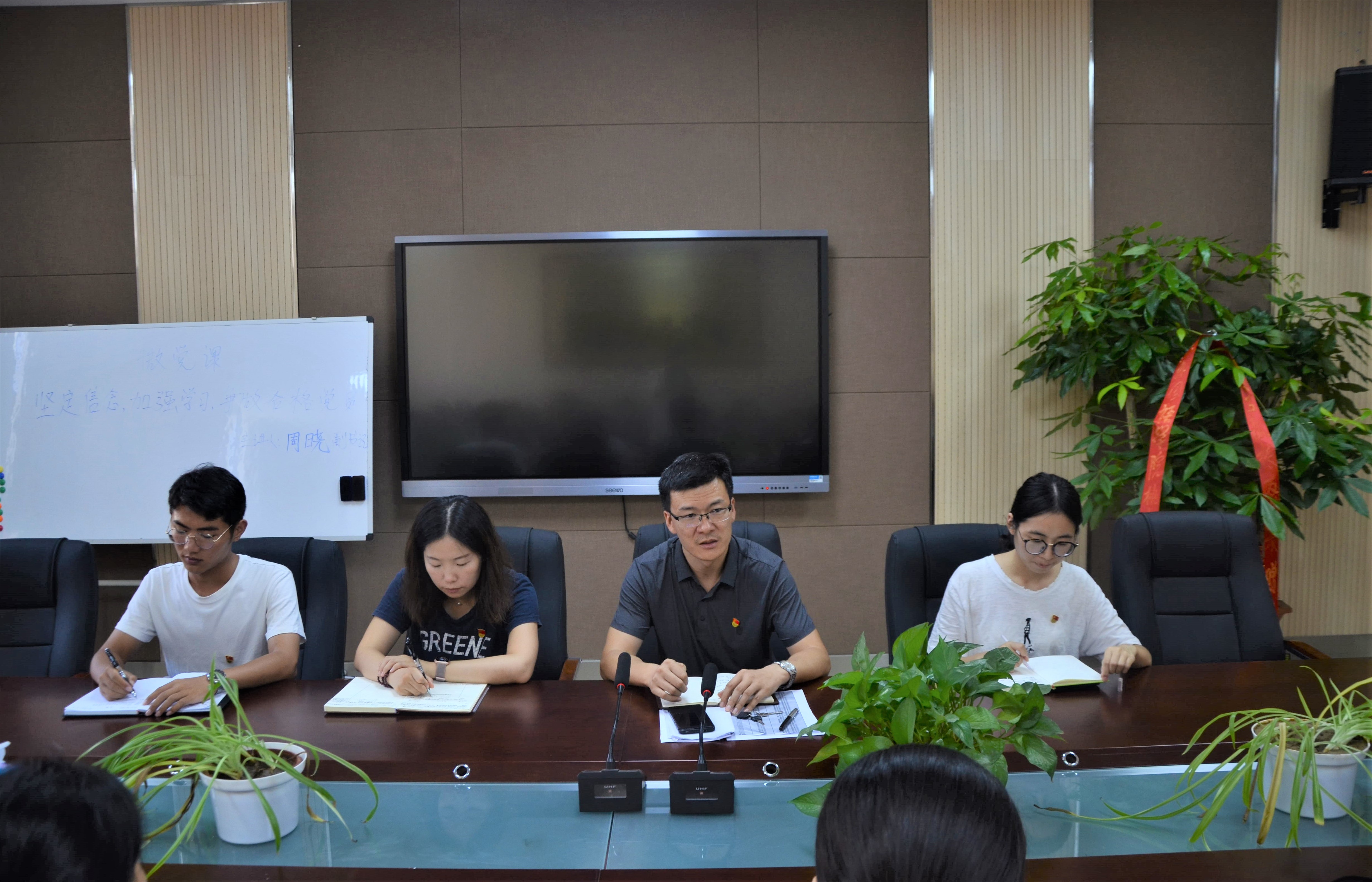 本网讯(审稿:邓然 供稿:梅如意)为切实加强党员的思想教育,坚定党员的理想信念,进一步发挥学生党员的先锋模范带头作用,9月5日中午12点半,院党委副书记周晓于繁塔楼A320会议室为我院学生党员讲授党课。组织员邓然、辅导员焦雪猛出席党课会议。