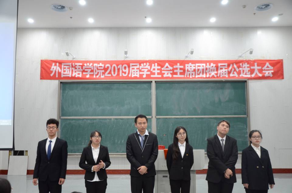 本网讯(审稿:王颖 供稿:陈晓寒)为加强学院学生队伍建设,保证我院学生工作的连续性,我院于5月31日晚七点在龙子湖校区繁塔楼AB间四楼大教室举办了2019届学生会主席团换届大会。团委书记李沛、党委组织员邓然、辅导员王颖、闫彬彬携主要学生干部及学生代表出席此次会议。