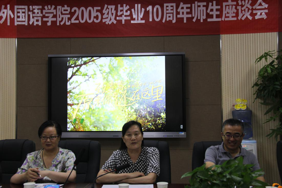 本网讯(审稿:李沛 供稿:张丹丹)7月27日下午,外国语学院在龙子湖校区繁塔楼A320会议室成功召开了“青春不散场,再叙师生情”2005级学生毕业10周年座谈会。校国际合作处处长屠克教授、校就业指导中心主任贾磊、院长李喜芬教授携时任和现任学院党政领导班子成员、团委辅导员热情接待了2005级35名校友代表重返母校,畅谈十年变迁,共叙师生情谊。