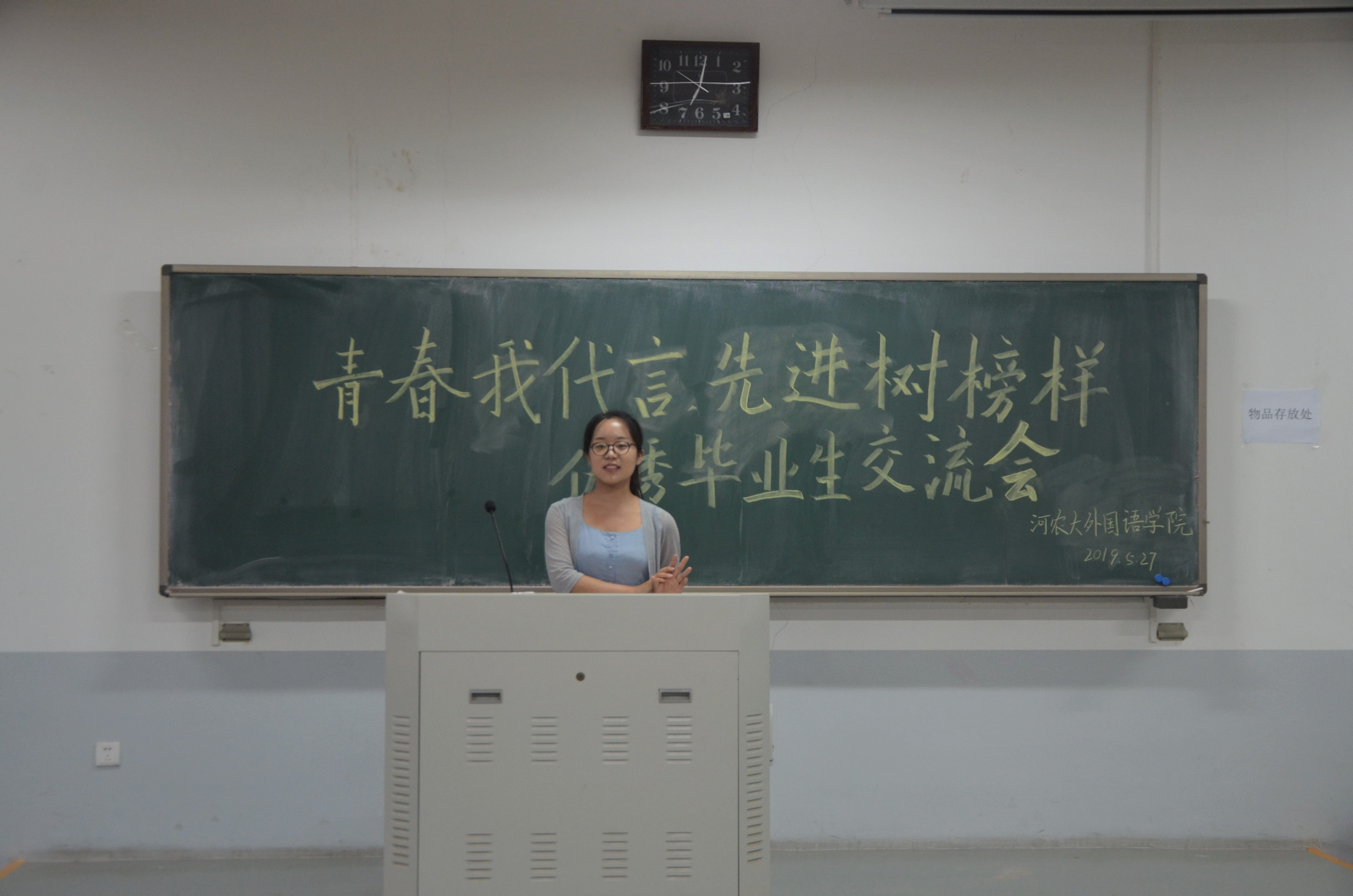 本网讯(审稿:王颖 供稿:饶芝玉)为激励我院学生树立远大目标,充分发挥优秀榜样的模范带头作用,学院于5月27日晚七点在龙子湖校区繁塔楼D212教室举办了优秀毕业生事迹交流会。16、17、18级学生代表参与了此次会议。