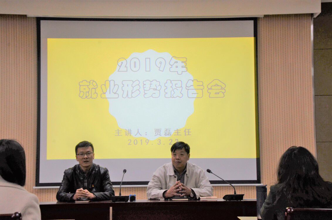 本网讯(审稿:王颖 供稿:饶芝玉)为进一步引导毕业生了解就业形势,把握就业机会,我院特邀校就业指导中心主任贾磊于2019年3月23日下午三点在龙子湖校区繁塔楼A324教室举办就业形势报告会。本次会议由院党委副书记周晓主持,各毕业班学生代表参与了此次会议。